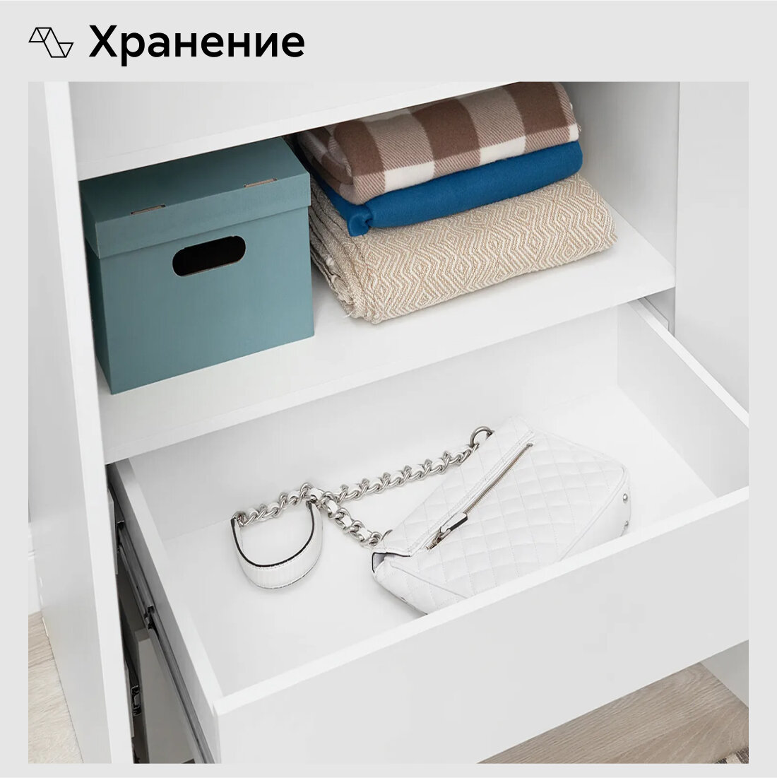 Шкаф для одежды распашной Нонтон Луас, 80 см, 3 полки, 1 штанга, 2 ящика, белый глянец