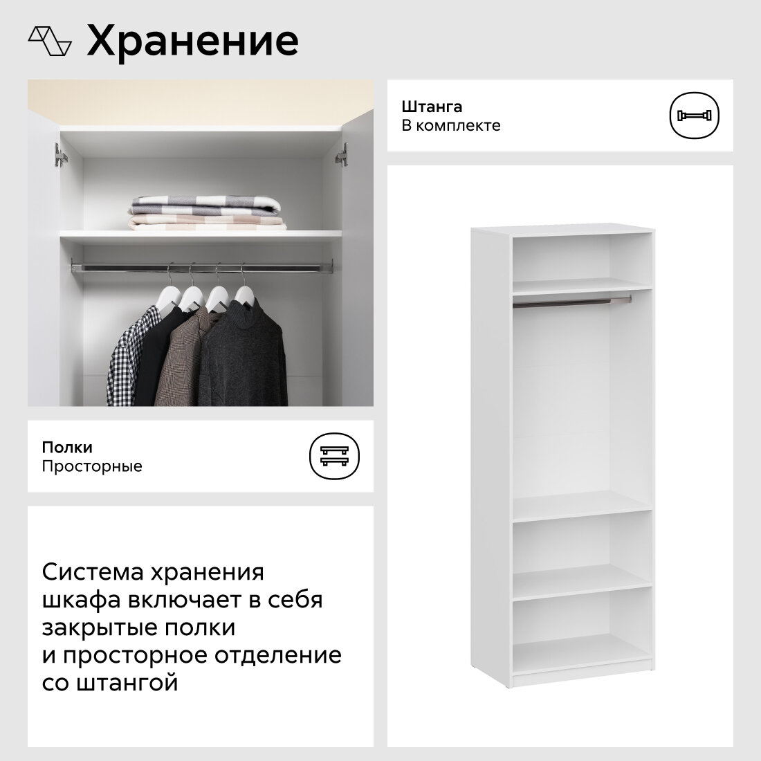 Шкаф для одежды распашной Нонтон Луас, 80 см, 3 полки и 1 штанга, белый текстурный