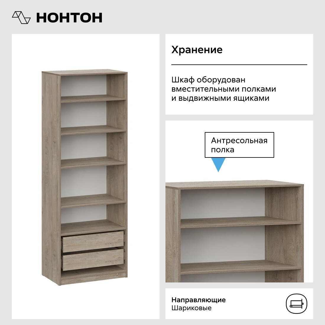 СохранитьШкаф для одежды распашной Нонтон Луас, 80 см, 5 полок и 2 ящика, эндгрейн / меланж интересное: