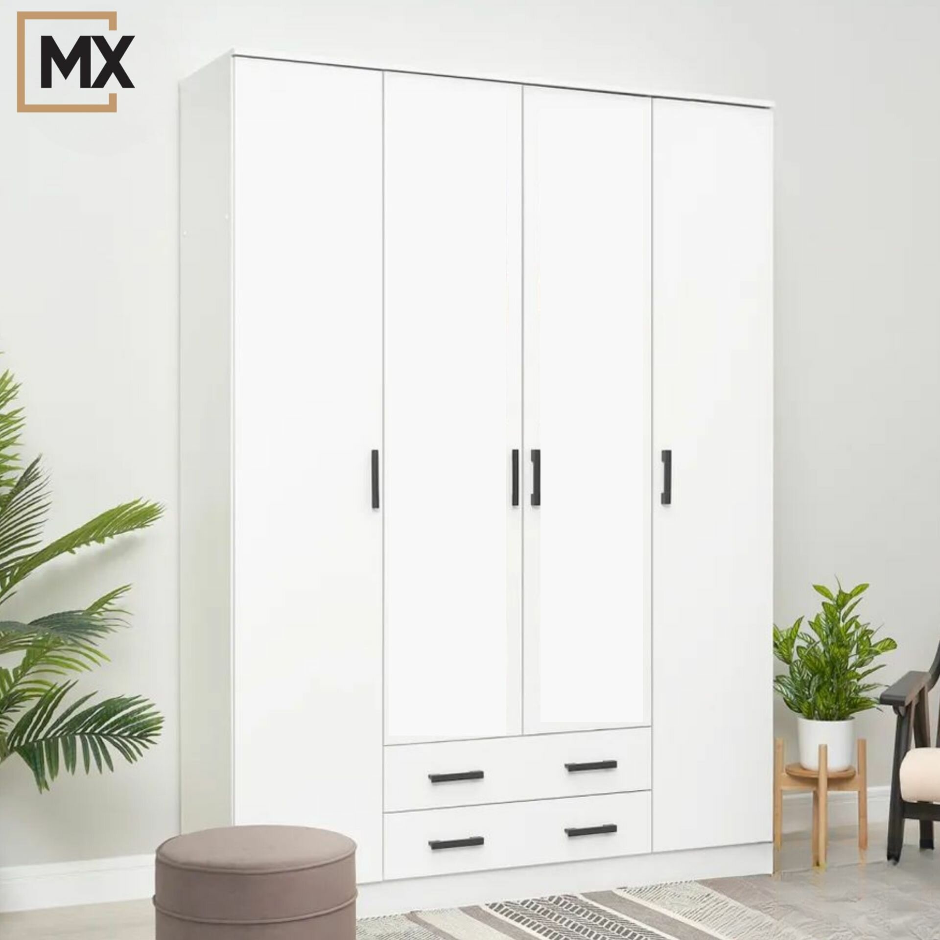 Купить Шкаф распашной Квадро Белый гладкий ЛДСП, с полками, ящиками, штангой, для спальни, гостиной 1600х2200х487 мебельный РАЙ