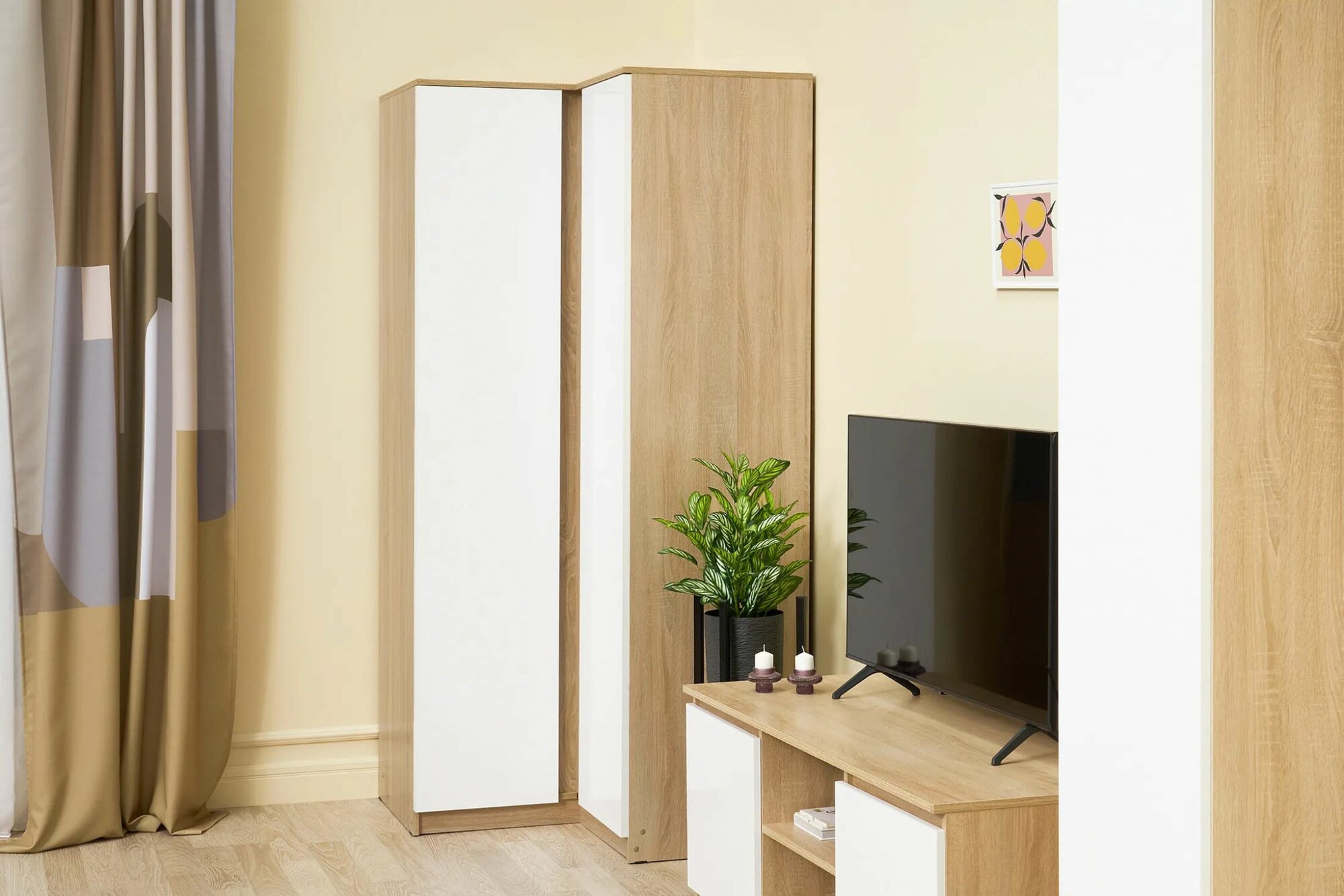 СохранитьШкаф угловой прямой Челси Белый глянец холодный/Дуб сонома интересное: