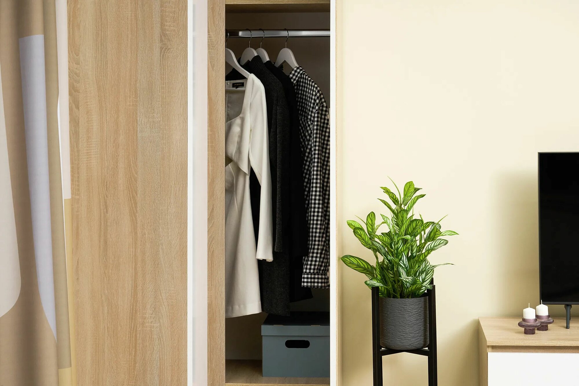 Шкаф для одежды распашной Нонтон Луас, 120 см, 7 полок и штанга, белый глянец