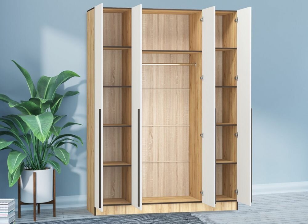 СохранитьШкаф распашной Бастион 4-х дверный без зеркал 1.6 м (белый древесный/дуб крафт золотой) интересное: