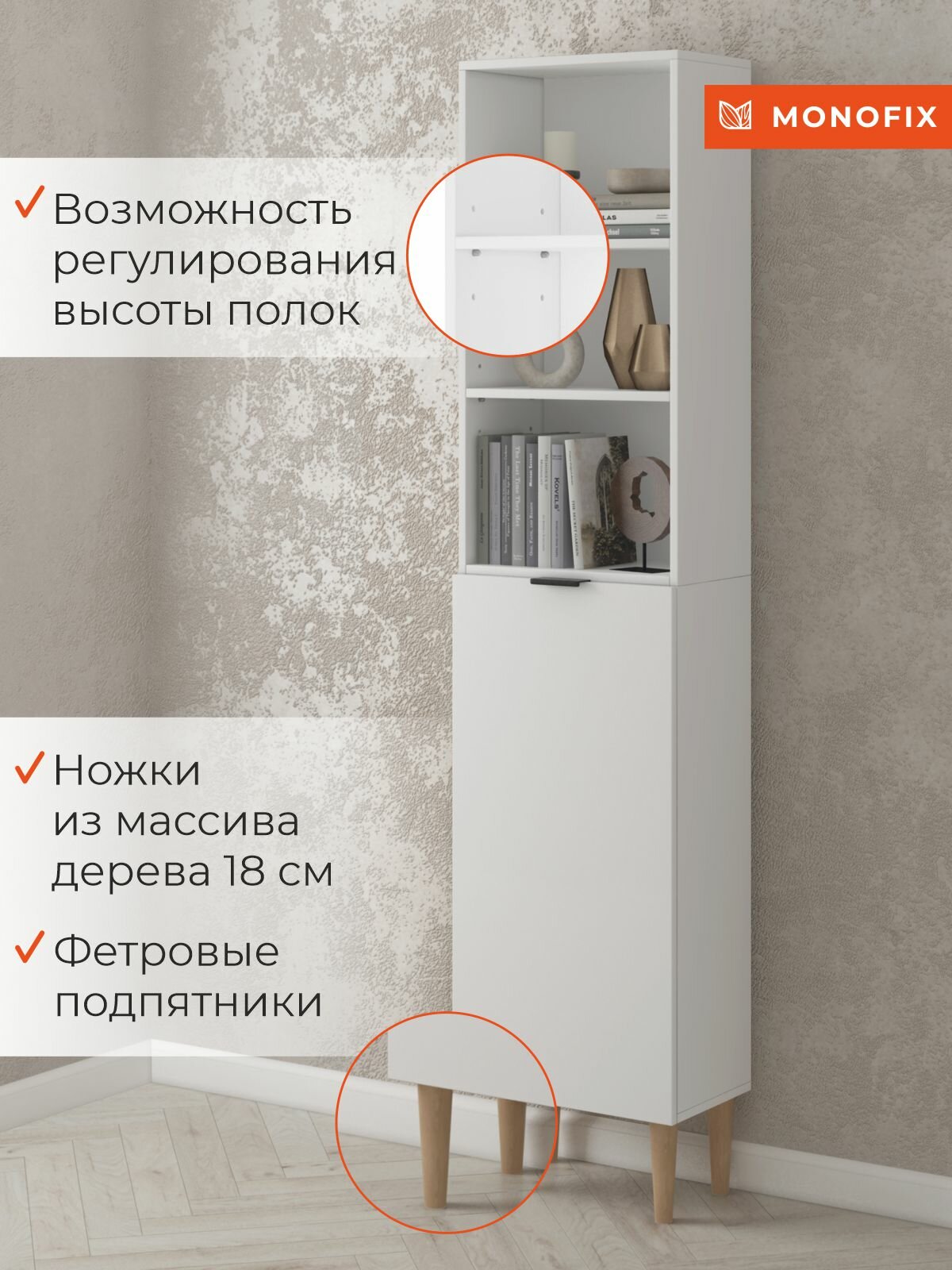 Белый стеллаж, шкаф-пенал напольный одос с 1 дверцей интересное: