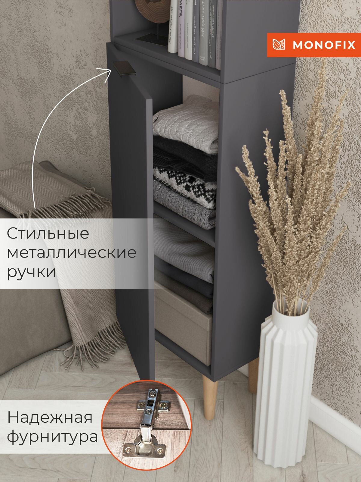 Стеллаж, шкаф-пенал напольный одос графит с 1 дверцей интересное: