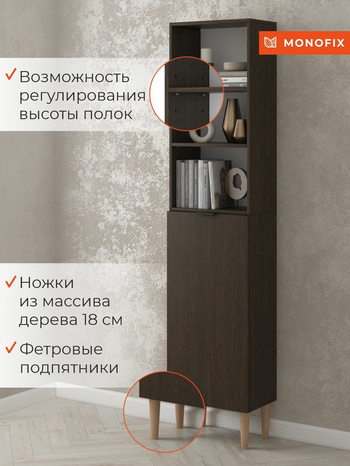 Стеллаж, шкаф-пенал напольный одос венге с 1 дверцей интересное: