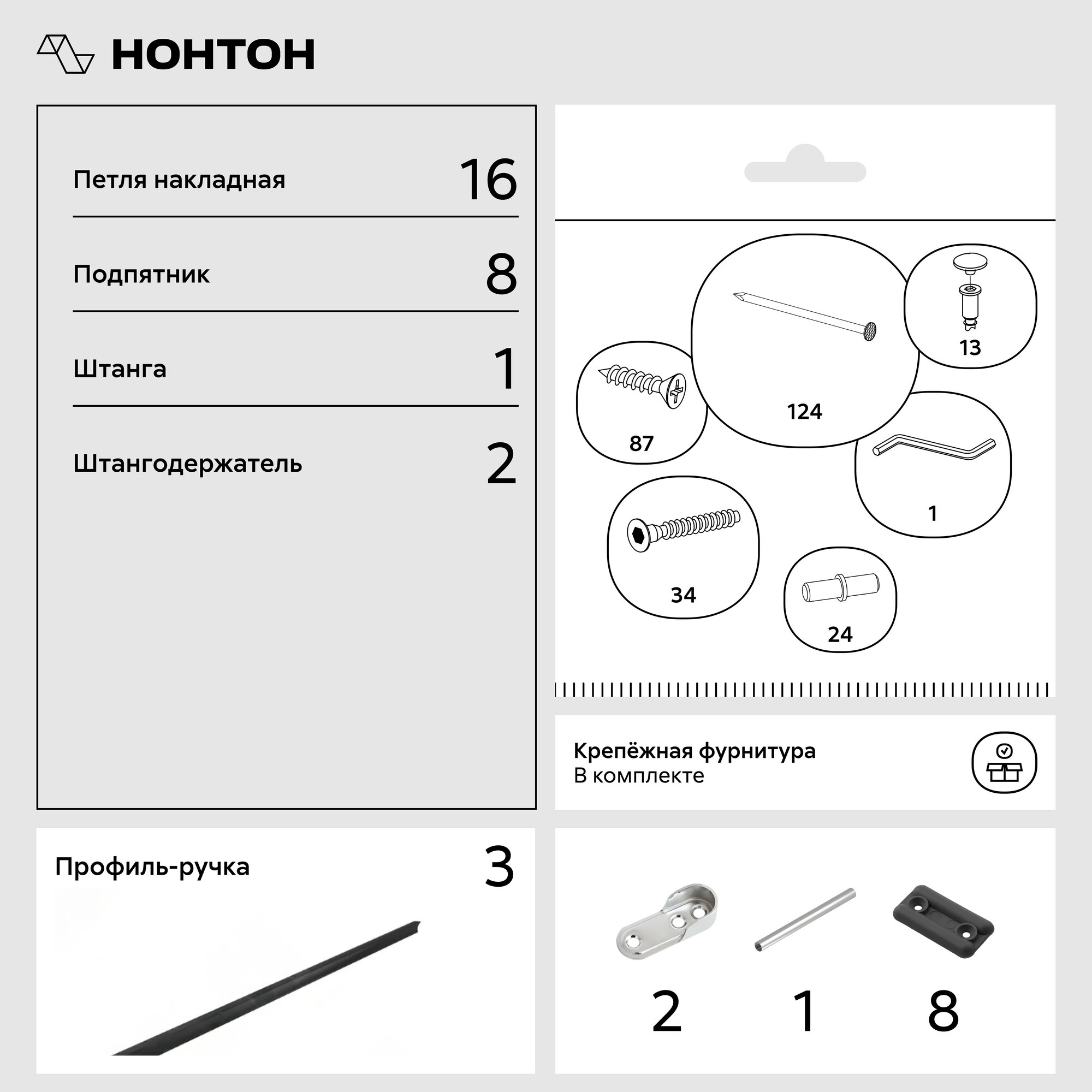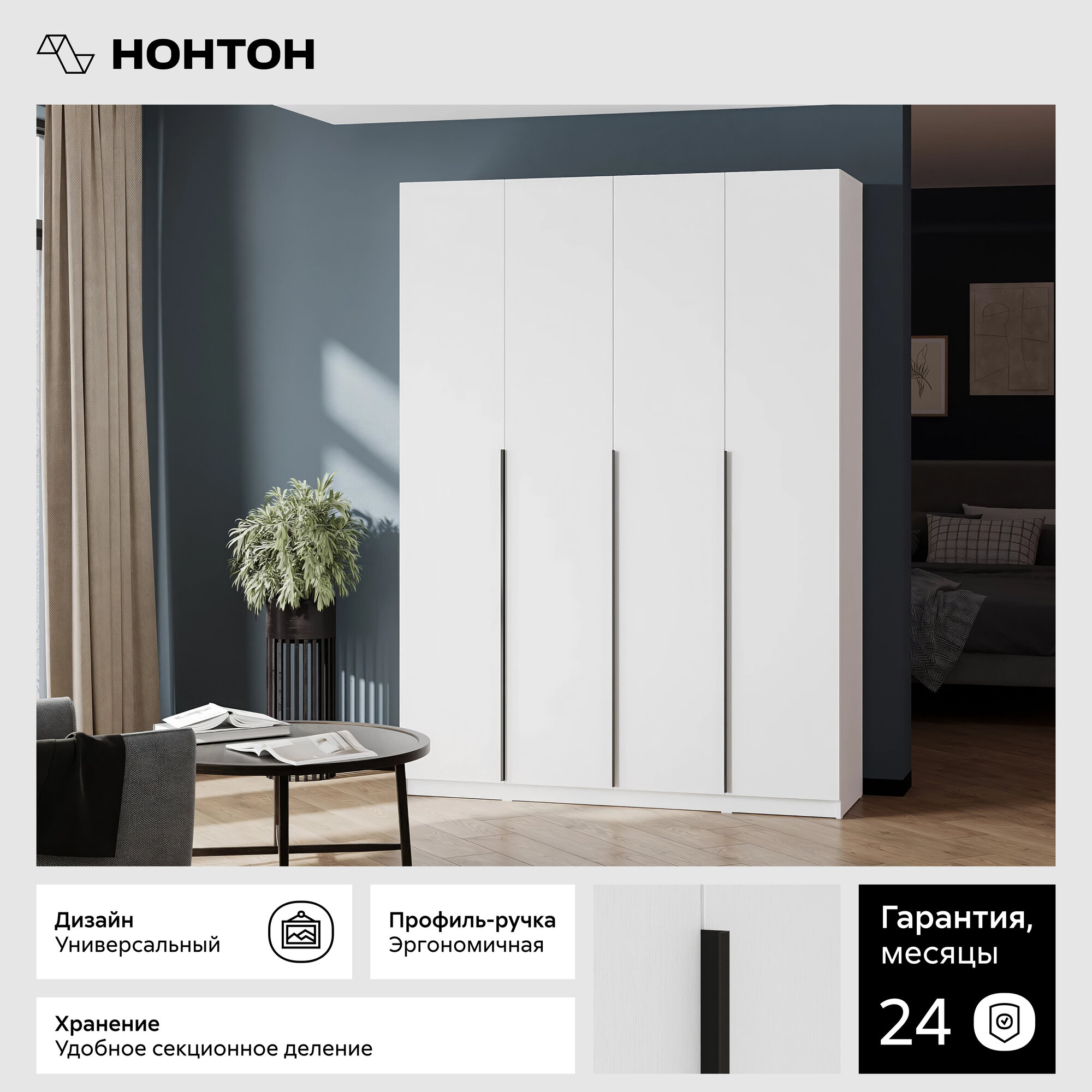 Шкаф для одежды распашной Нонтон Луас, 160 см, 9 полок и штанга, белый текстурный