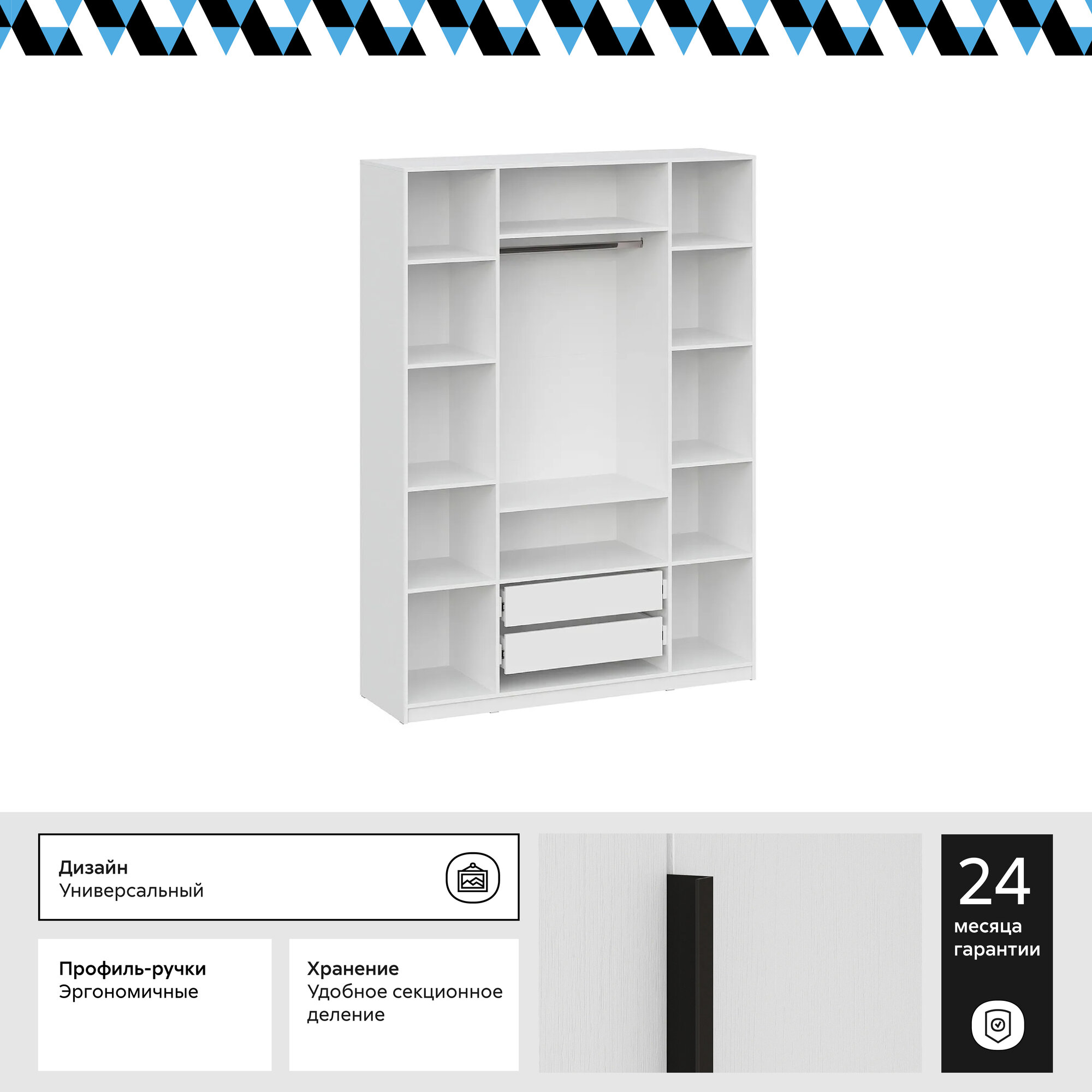 Купить Шкаф для одежды распашной Нонтон Луас, 160 см, 11 полок, 1 штанга, 2 ящика, белый текстурный