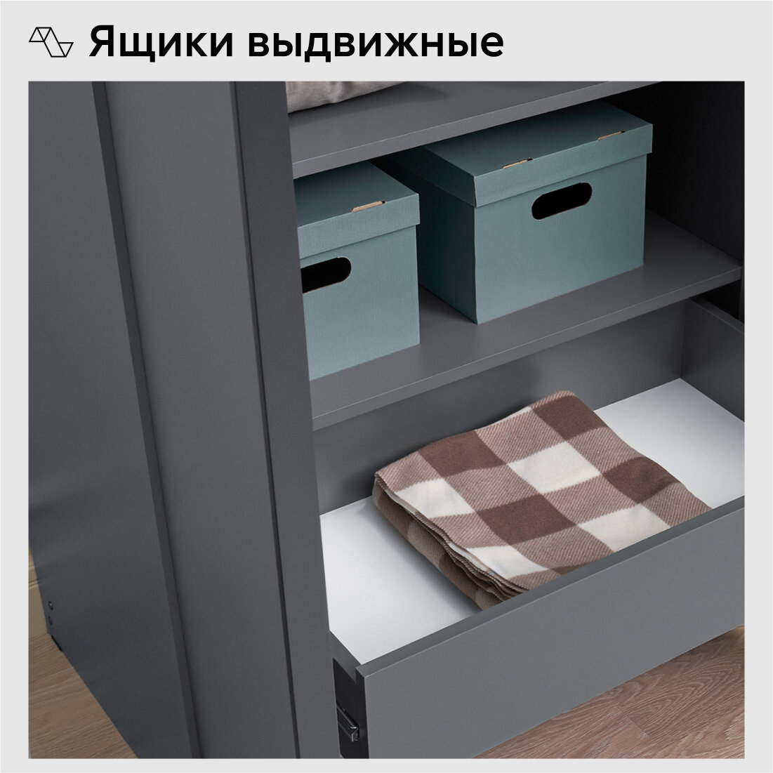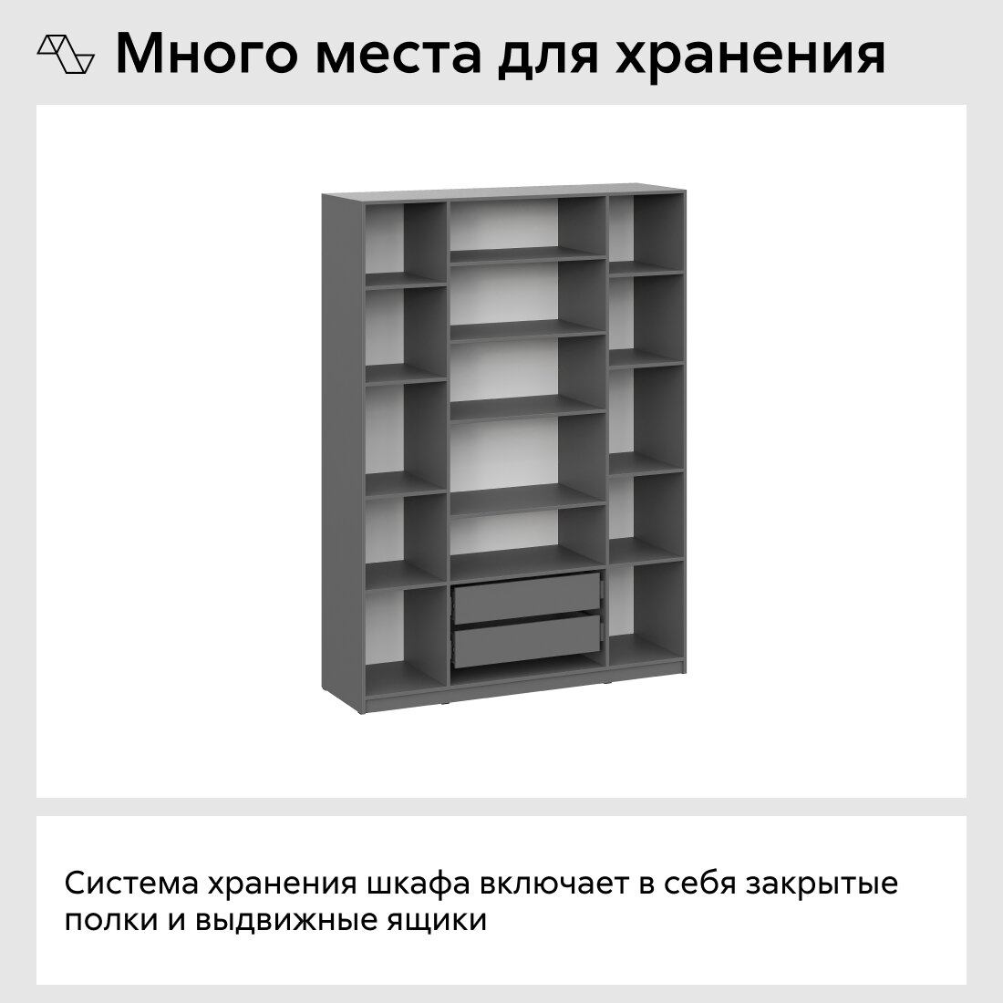 Шкаф для одежды распашной Нонтон Луас, 160 см, 13 полок и 2 ящика, графит серый интересное: