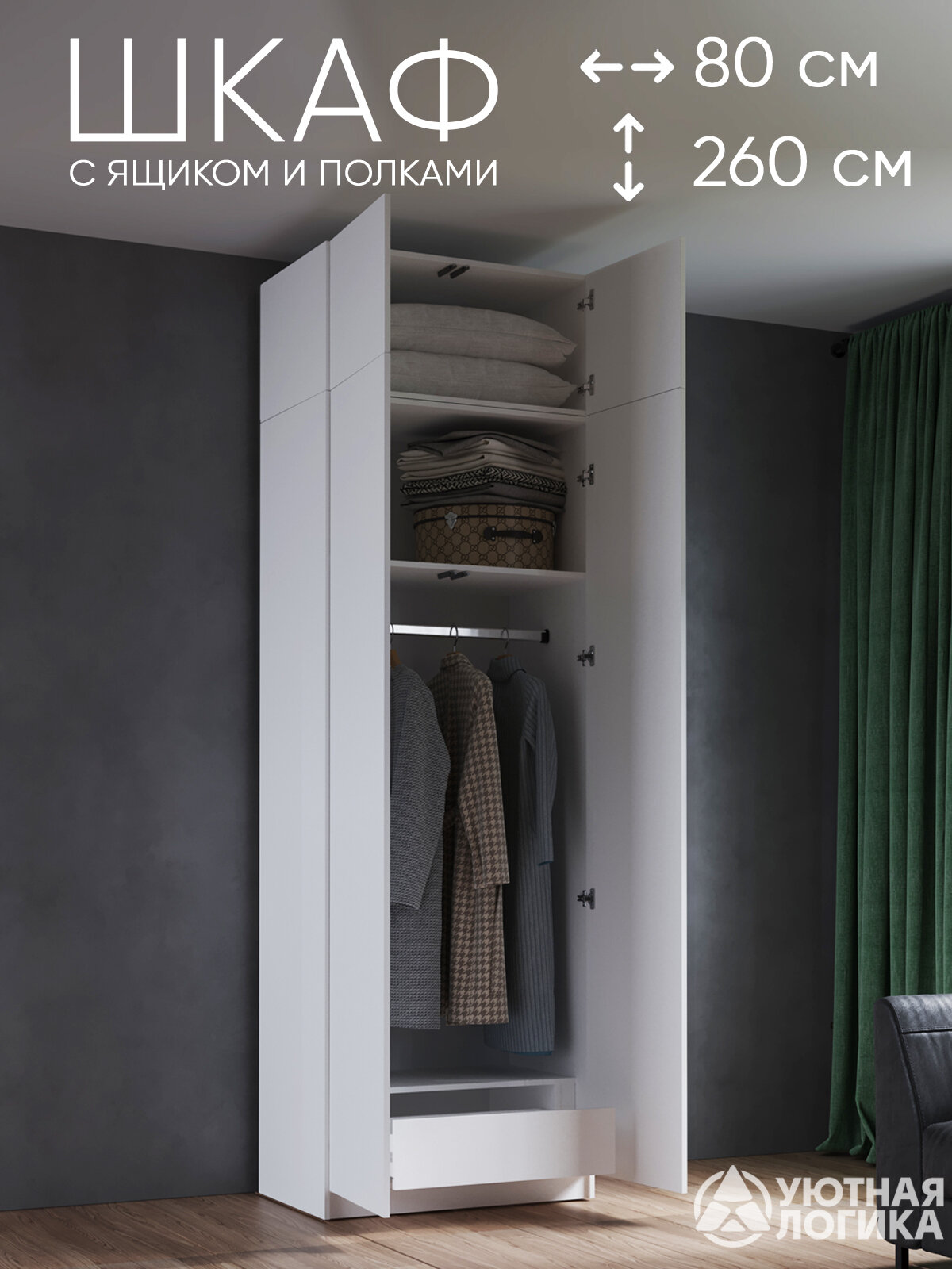 Шкаф распашной с ящиком УЮТНАЯ ЛОГИКА Дева ВН-162Я1, 80x220x50 см, белый, ЛДСП интересное: