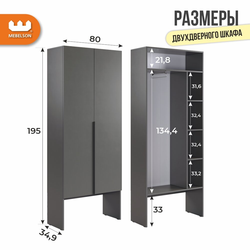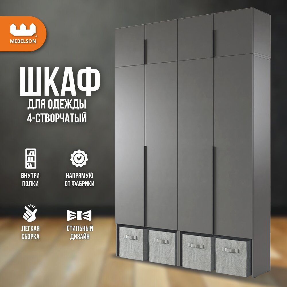 Шкаф для одежды распашной четырехдверный "Баско" К6, цвет Графит, 160*35*235 см, Mebelson интересное: