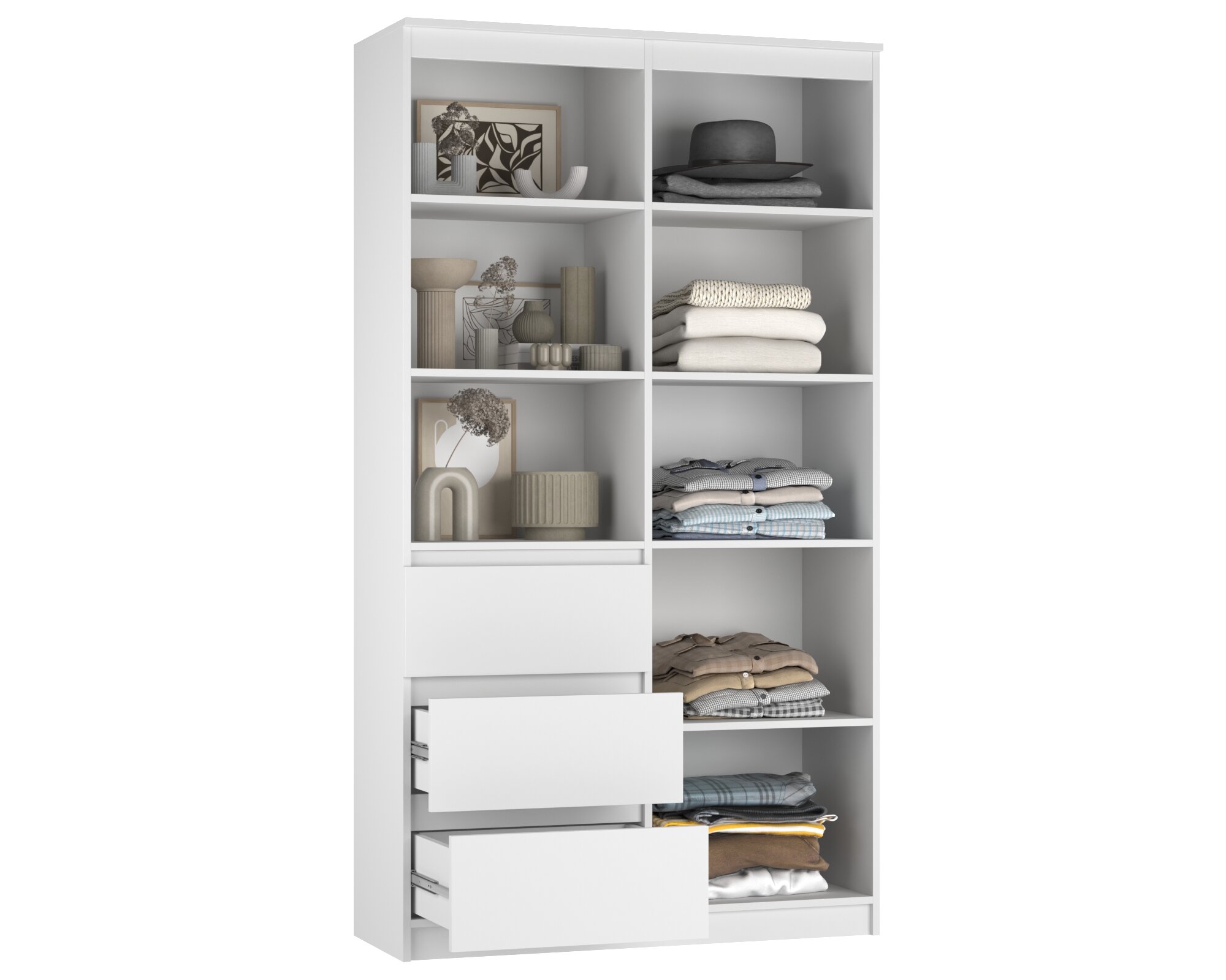Шкаф для одежды распашной Нонтон Луас, 120 см, 7 полок и штанга, белый глянец
