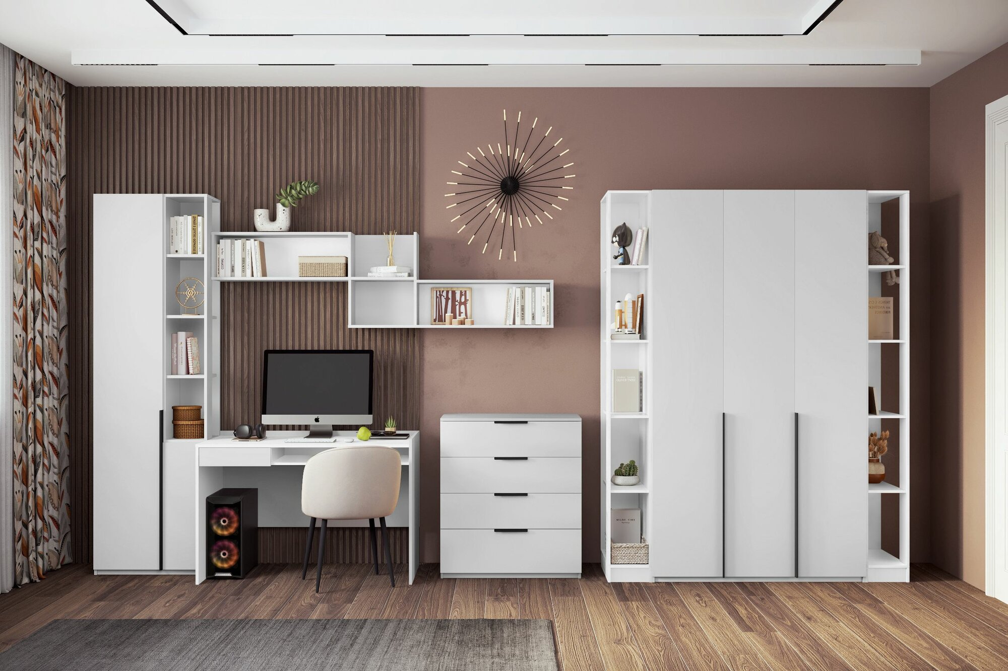 Шкаф для одежды распашной Нонтон Луас, 120 см, 7 полок и штанга, белый глянец