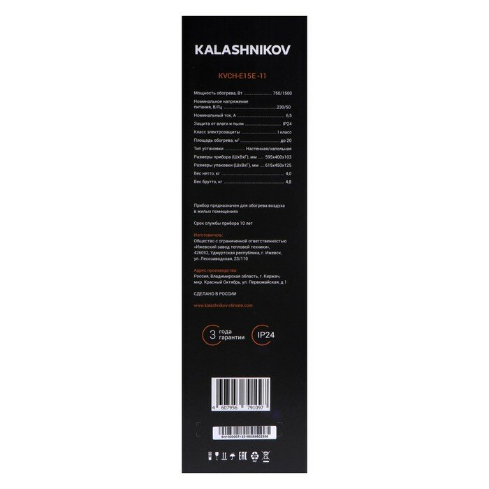 Конвектор Kalashnikov KVCH-E15E-11 105058 .