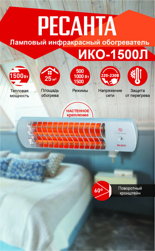 Инфракрасный обогреватель Ресанта ИКО-1500Л (кварцевый) интересное: