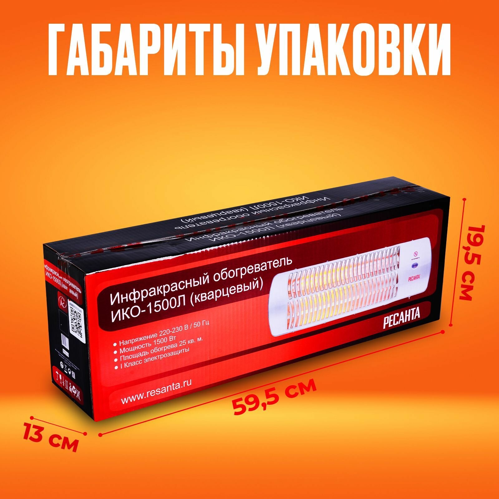 Инфракрасный обогреватель Ресанта ИКО-1500Л, 1500Вт, 25м2, кварцевый, белый [67/5/10]