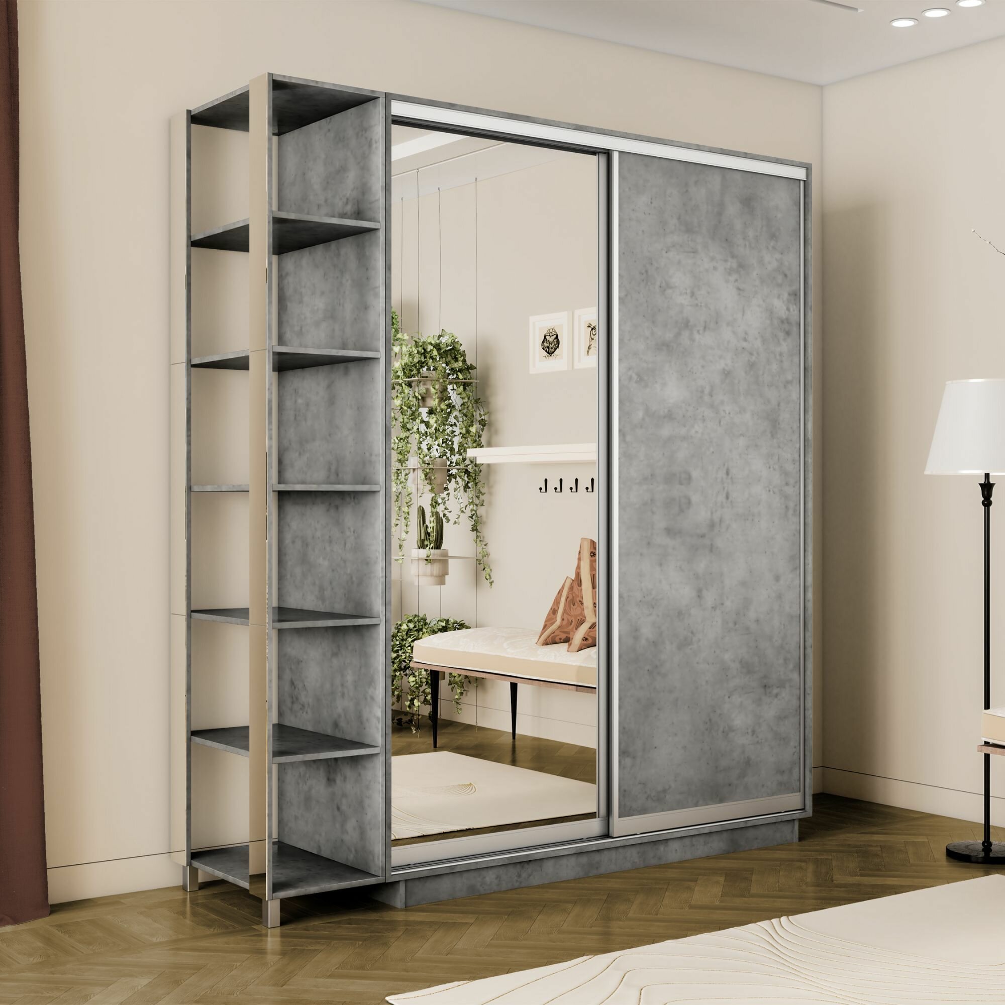 Шкаф-купе Экспресс 2-х дверный, ДСП/Зеркало, 140х45х240, Мебельная компания Е1, Бетон