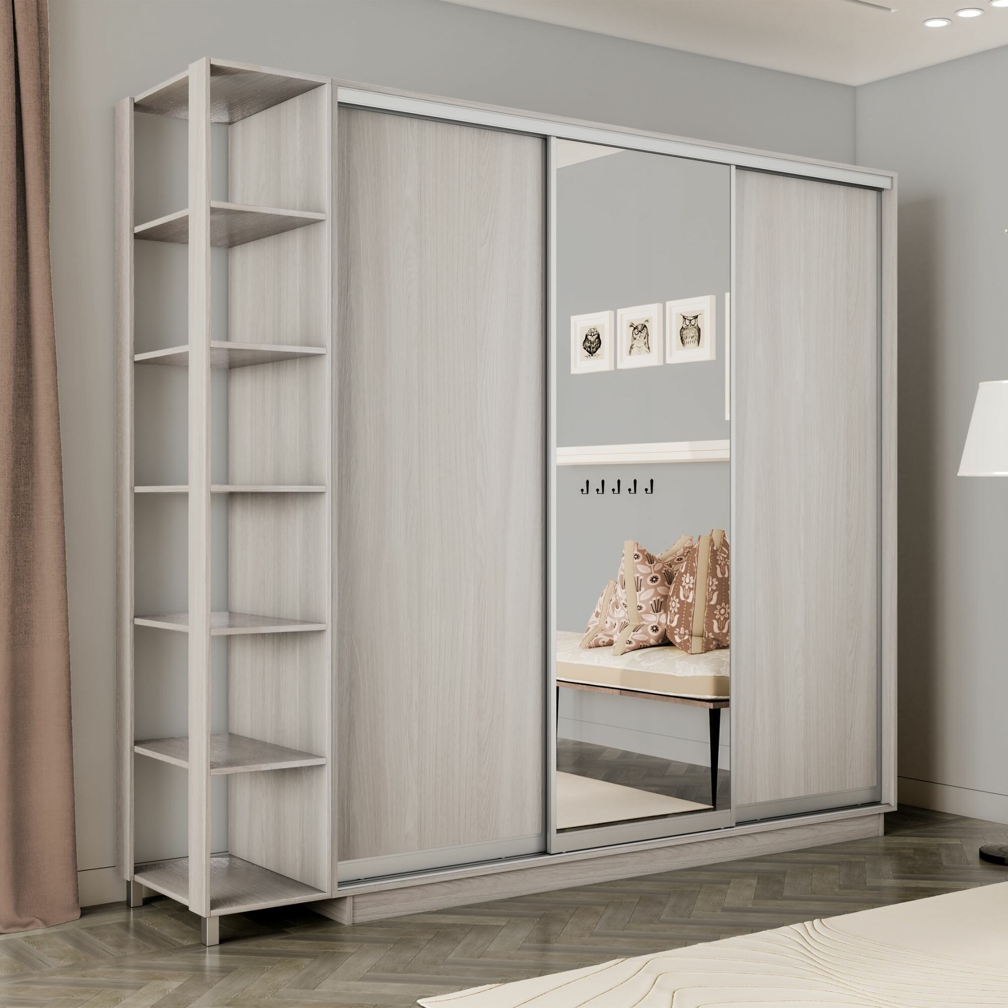 Шкаф купе для одежды Экспресс 3-x дв 210 x 240 x 60 ЛДСП Зеркало Ясень шимо светлый