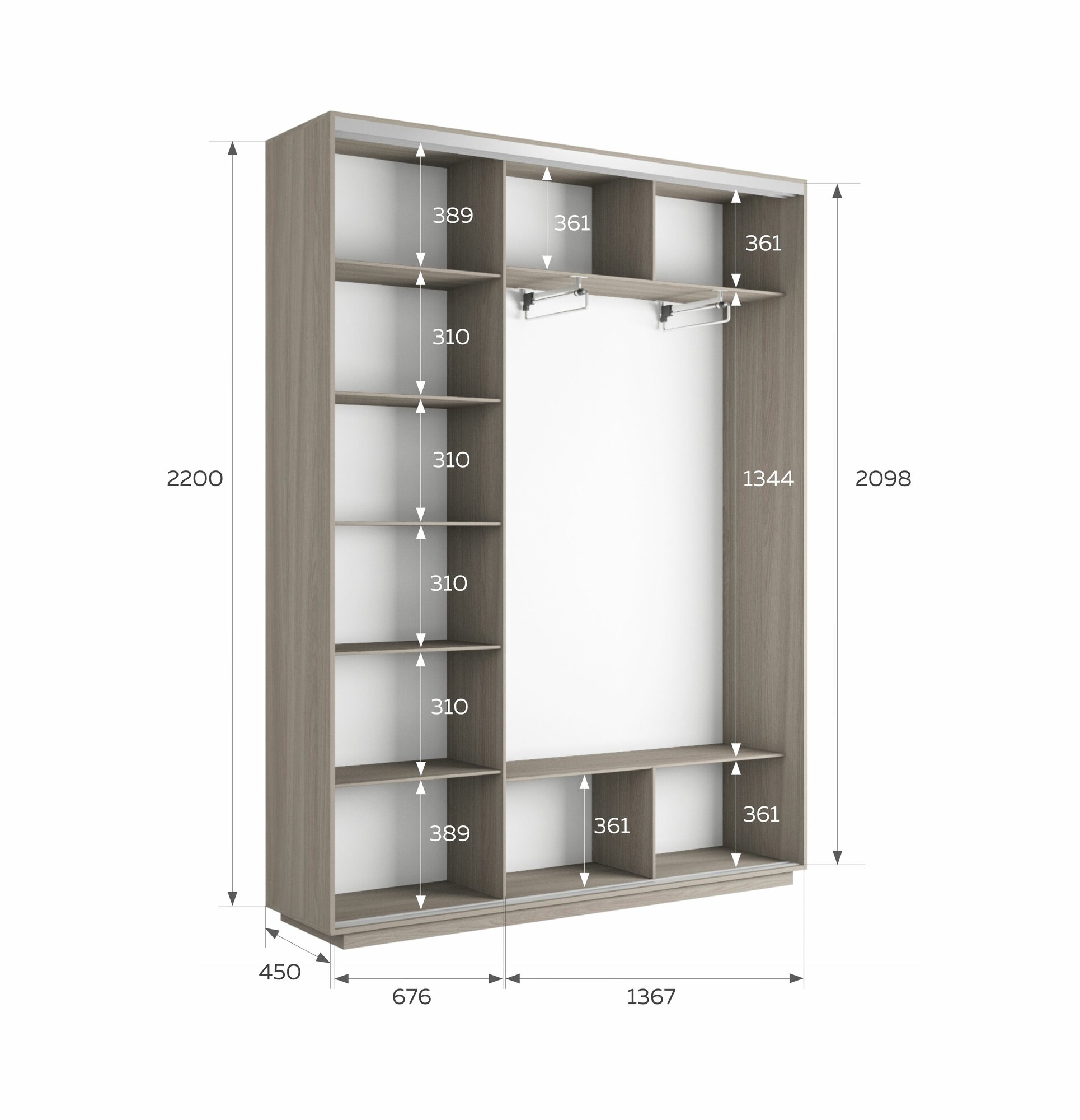 Шкаф купе для одежды Экспресс Дуо 2-x дв 180 x 240 x 45 ЛДСП Ясень шимо светлый Широкий