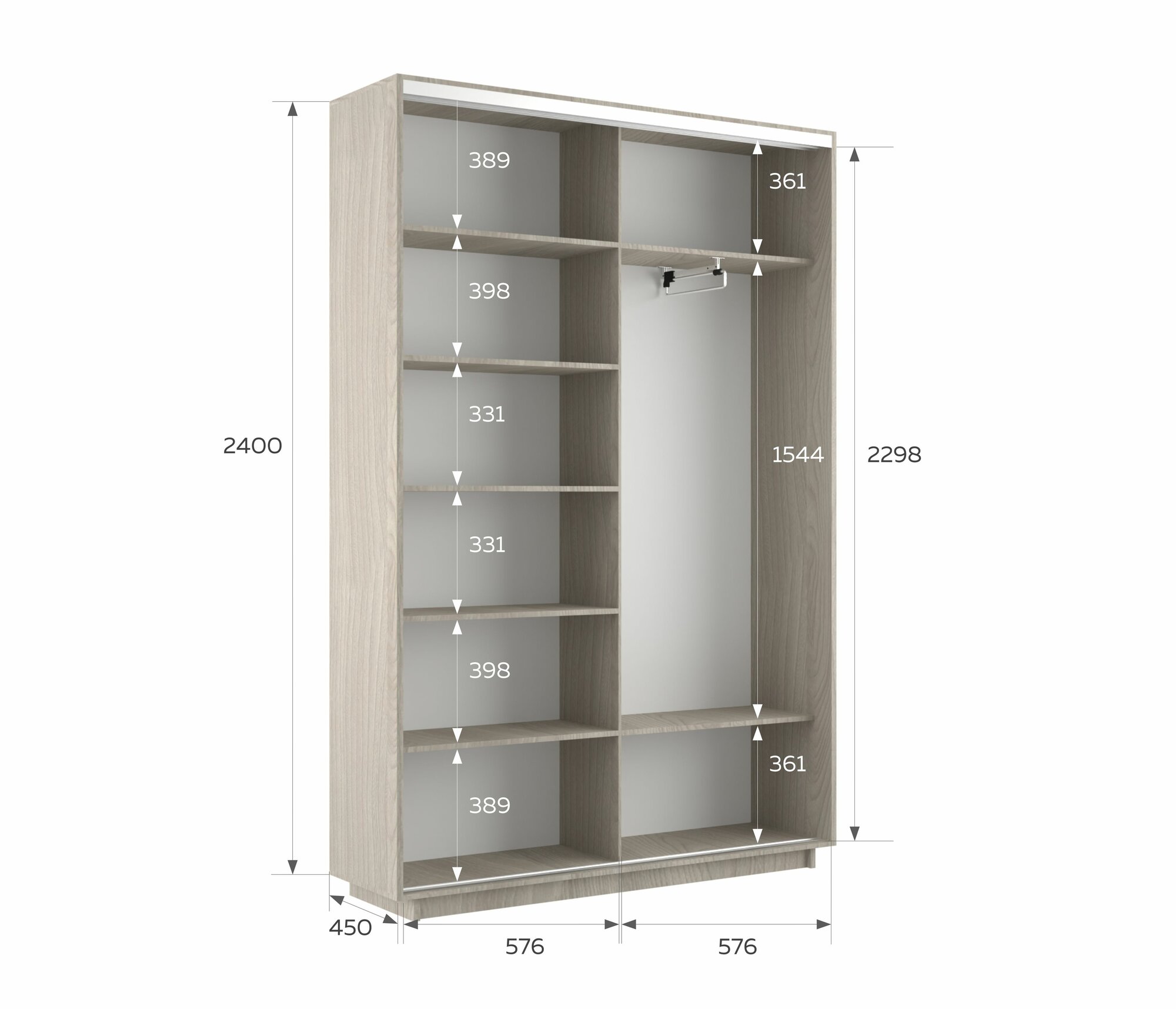 Шкаф купе для одежды Экспресс Дуо 2-x дв 180 x 240 x 45 ЛДСП Ясень шимо светлый Широкий