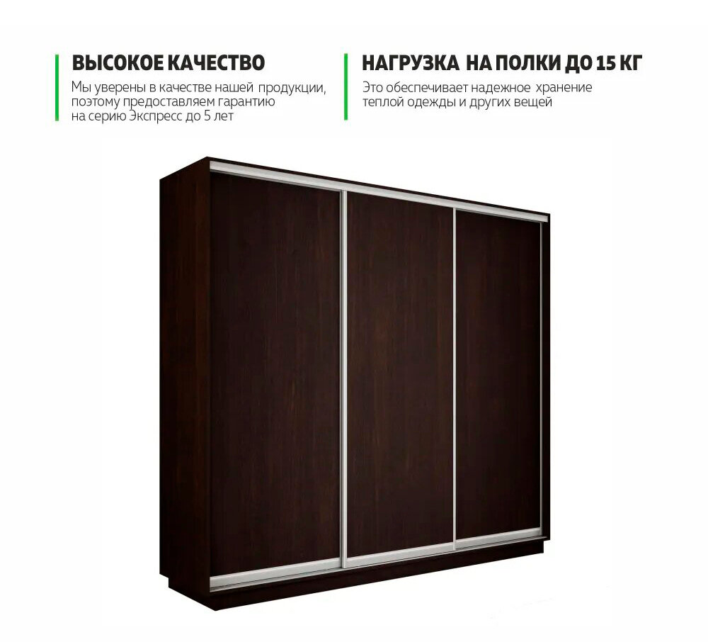 Шкаф-купе 2,4 Экспресс 3-х дверный 240х220х45 ЛДСП/ЛДСП/ЛДСП Венге