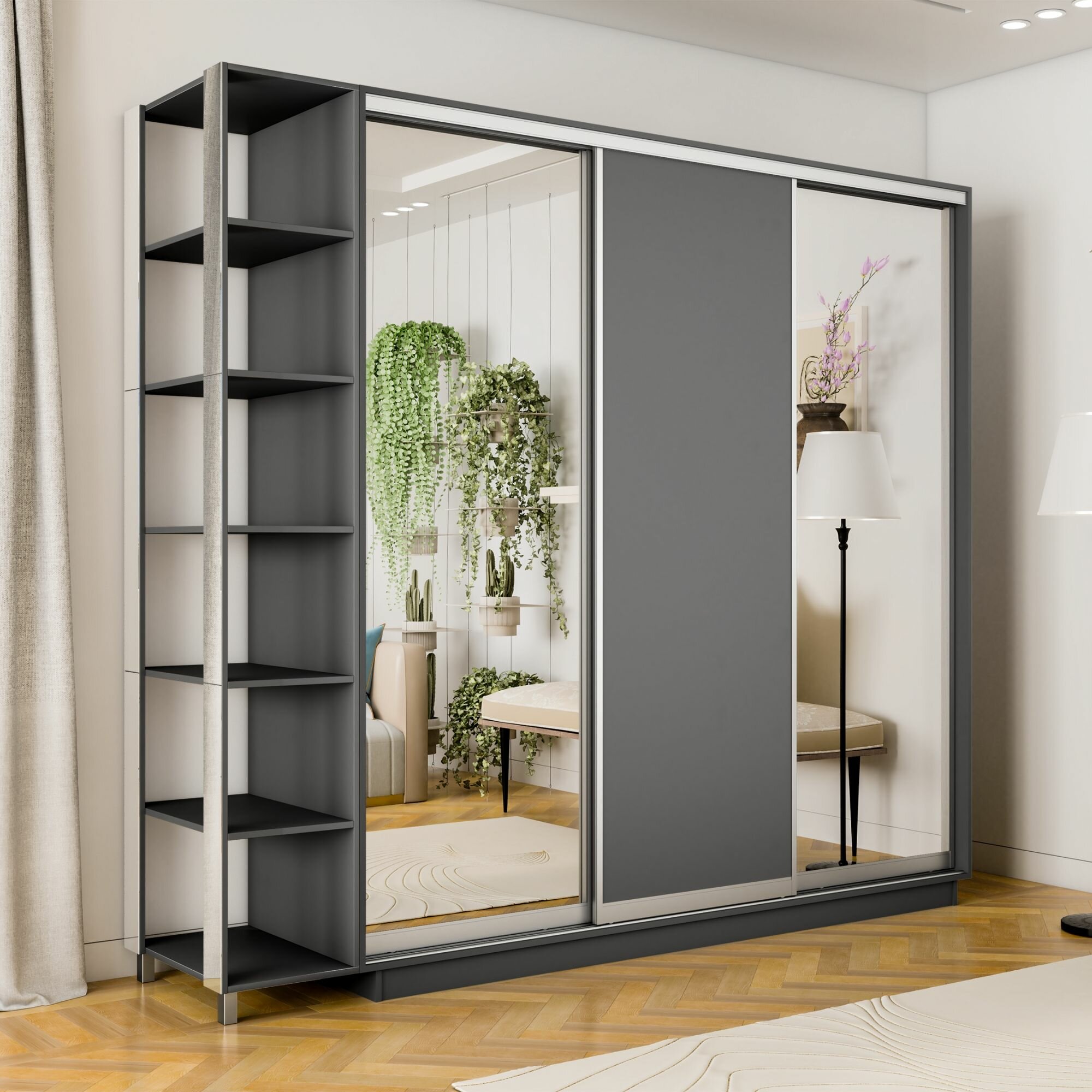 Шкаф-купе Экспресс 3-х дверный, Зеркало/ДСП 240х45х240, Мебельная компания Е1, Серый диамант