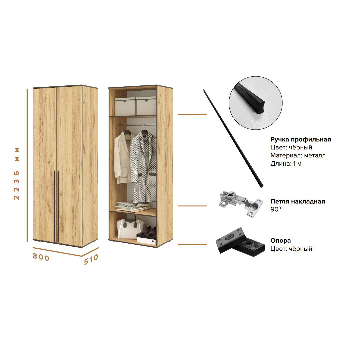 Шкаф 2-х ств. Норд 800х2236х510 мм, цвет Дуб Крафт, ЛДСП, МИФ