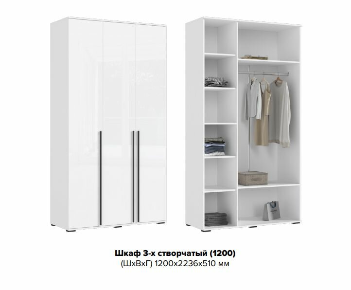 СохранитьШкаф распашной 3-х створчатый Норд 1,2 Белый глянец интересное: