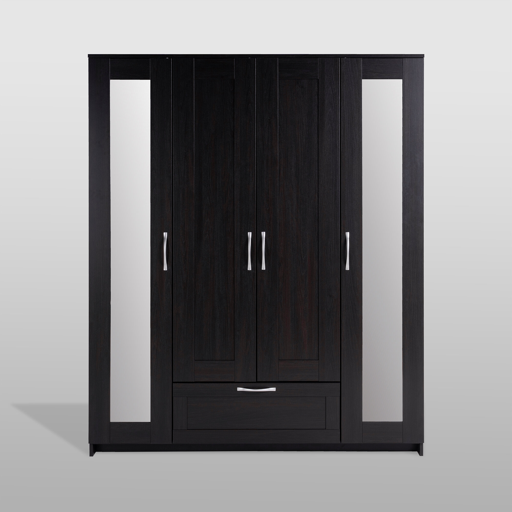 Шкаф ГУД ЛАКК Сириус, 4 двери и 1 ящик с зеркалами, 190х156х50 см, черно-коричневый, дуб венге интересное: