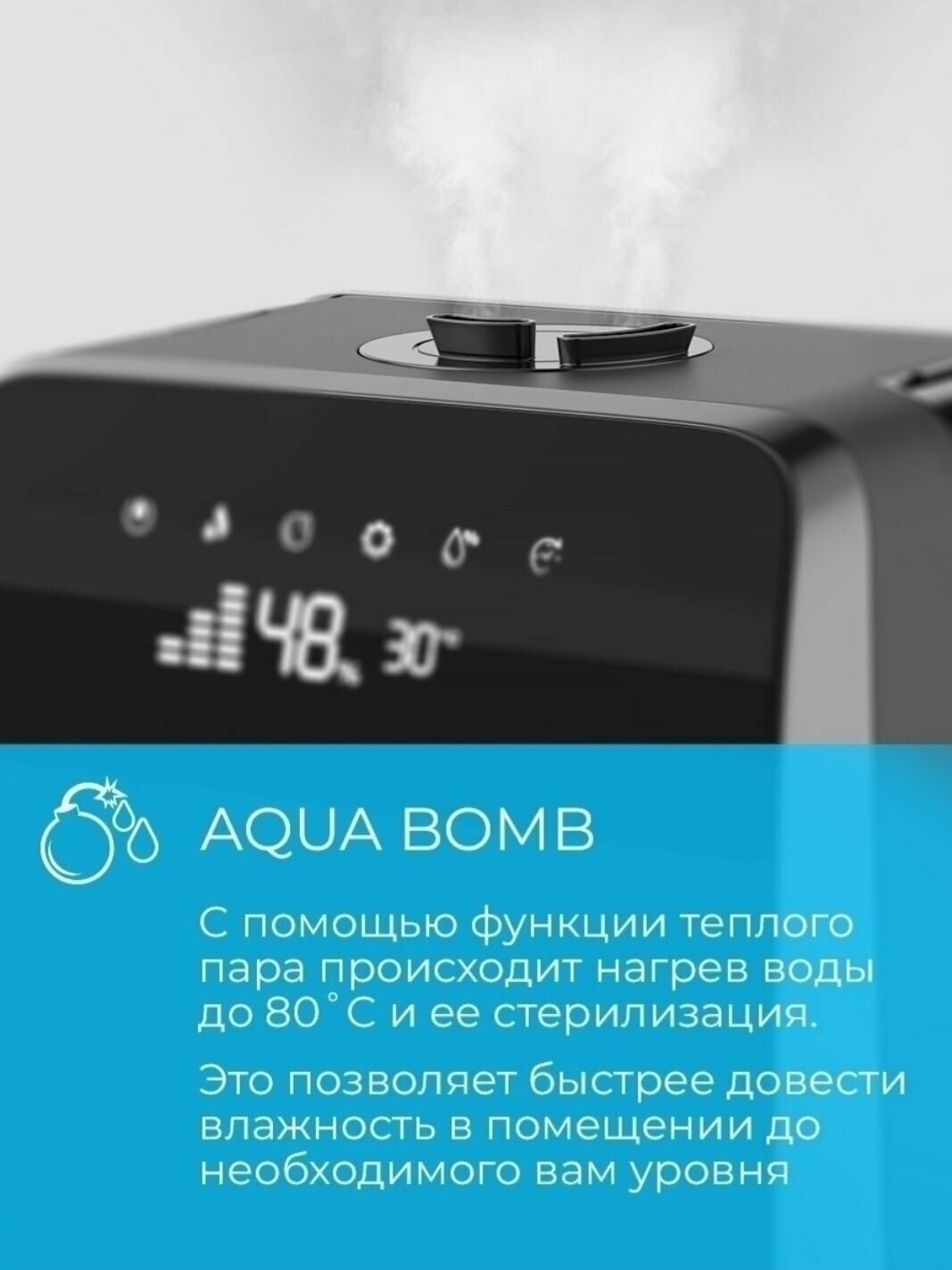 Он не булькает, не журчит и не жужжит как все остальные, то есть можно оставить на ночь и даже если у вас довольно чуткий сон, то он вас не разбудит. Увлажняет воздух в квартире до 45% зимой довольно быстро, а с функцией теплый пар еще быстрее. Есть режим поддержания влажности, то есть увлажнитель не совсем отключается по достижении необходимого процента влажности, а сбавляет мощность и до увлажняет воздух по мере его осушения. Информативный, яркий дисплей и пульт дистанционного управления. Не пищит мерзко когда вода заканчивается - издает приятный на слух сигнал. Как приятный бонус ко всему функционалу есть капсула для аромомасел ? |