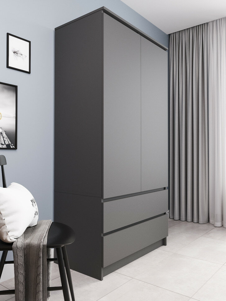 Шкаф 2-х ств. Челси комбинированный 902х1796х514 мм, Графит, МИФ интересное: