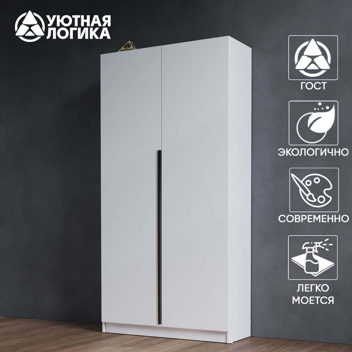 Шкаф распашной УЮТНАЯ ЛОГИКА "Дева Лонг" ШКР-048Л / 100*220*50 см, Белый с полками интересное: