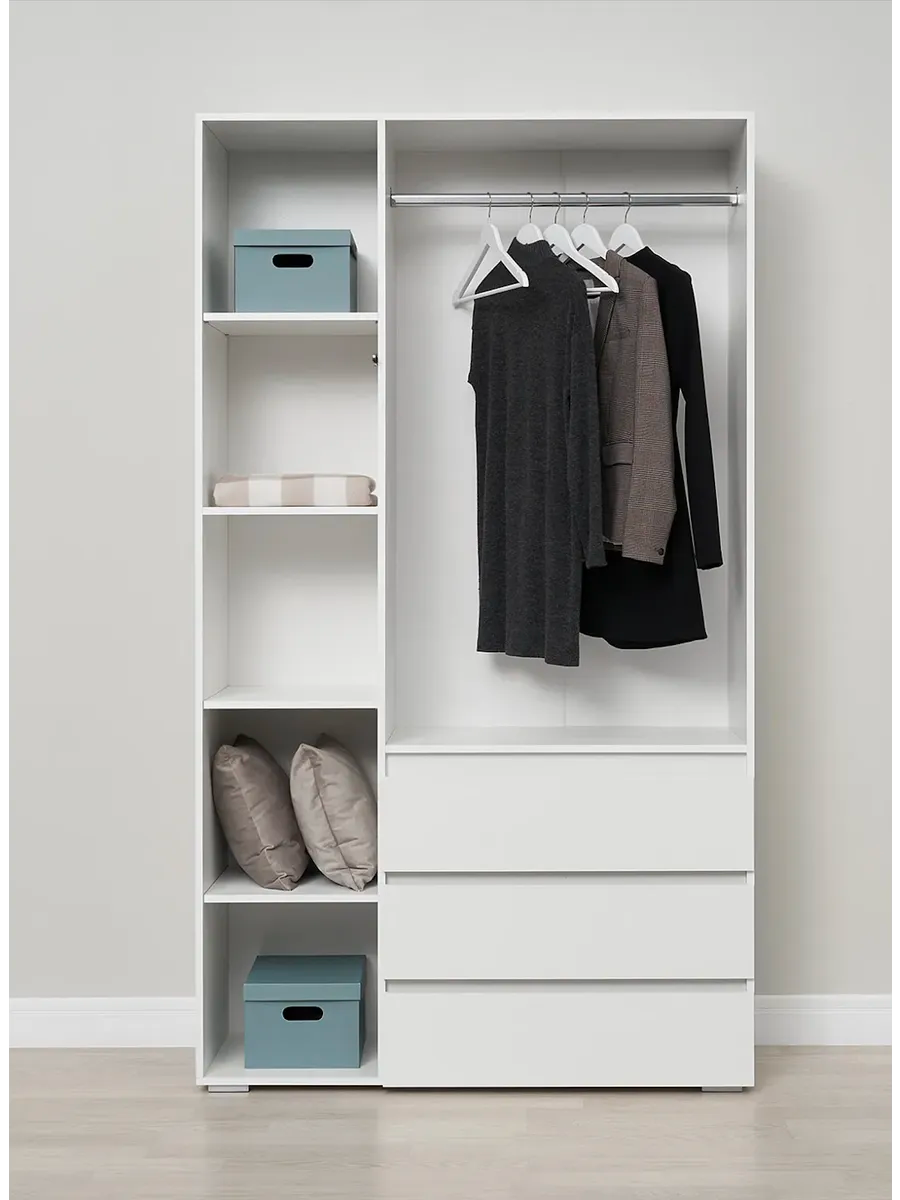 Распашной шкаф для одежды с ящиками, с полкой, продольная штанга, 120х46х208 см, Белый, Хелен ШК 06 интересное: