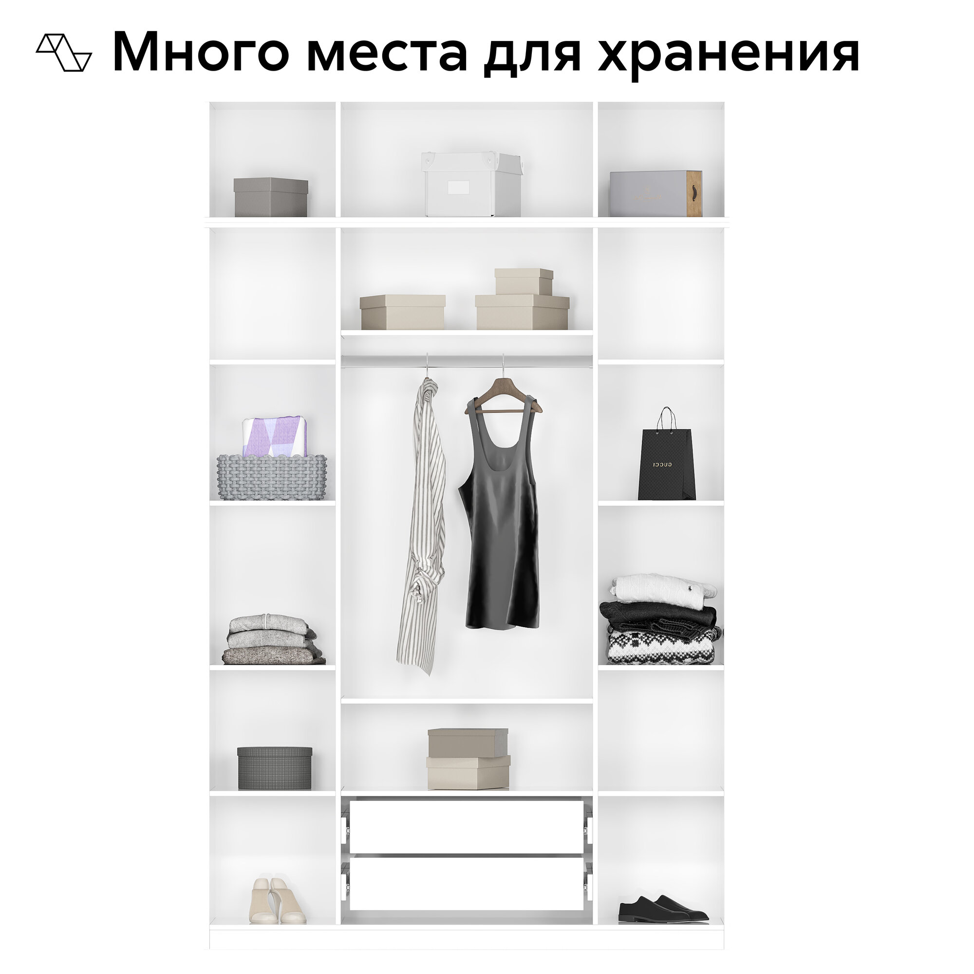СохранитьШкаф для одежды распашной Нонтон Луас, с антресолью, 160 см, 11 полок, 1 штанга, 2 ящика, белый глянец интересное: