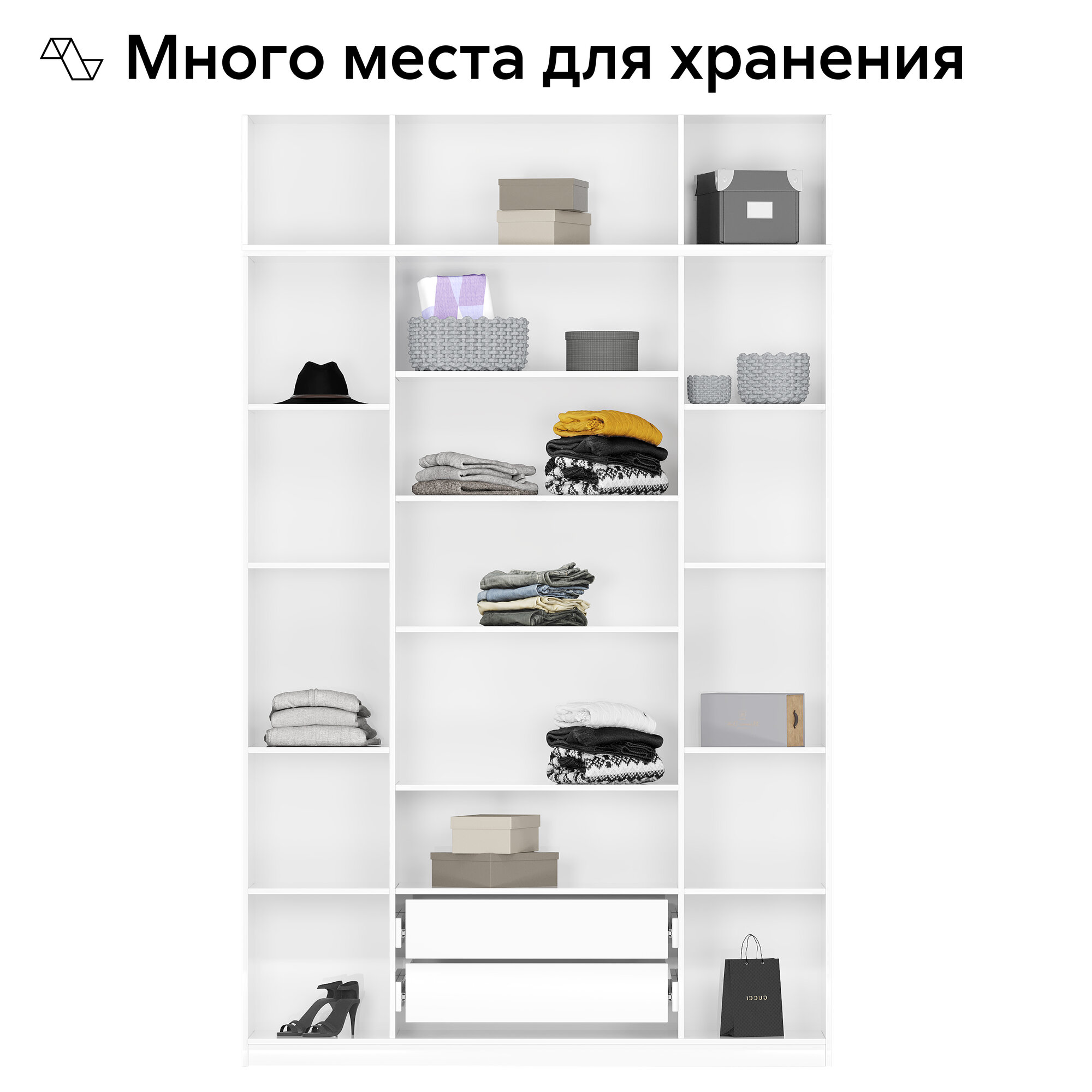 СохранитьШкаф для одежды распашной Нонтон Луас, с антресолью, 160 см, 13 полок и 2 ящика, белый текстурный интересное: