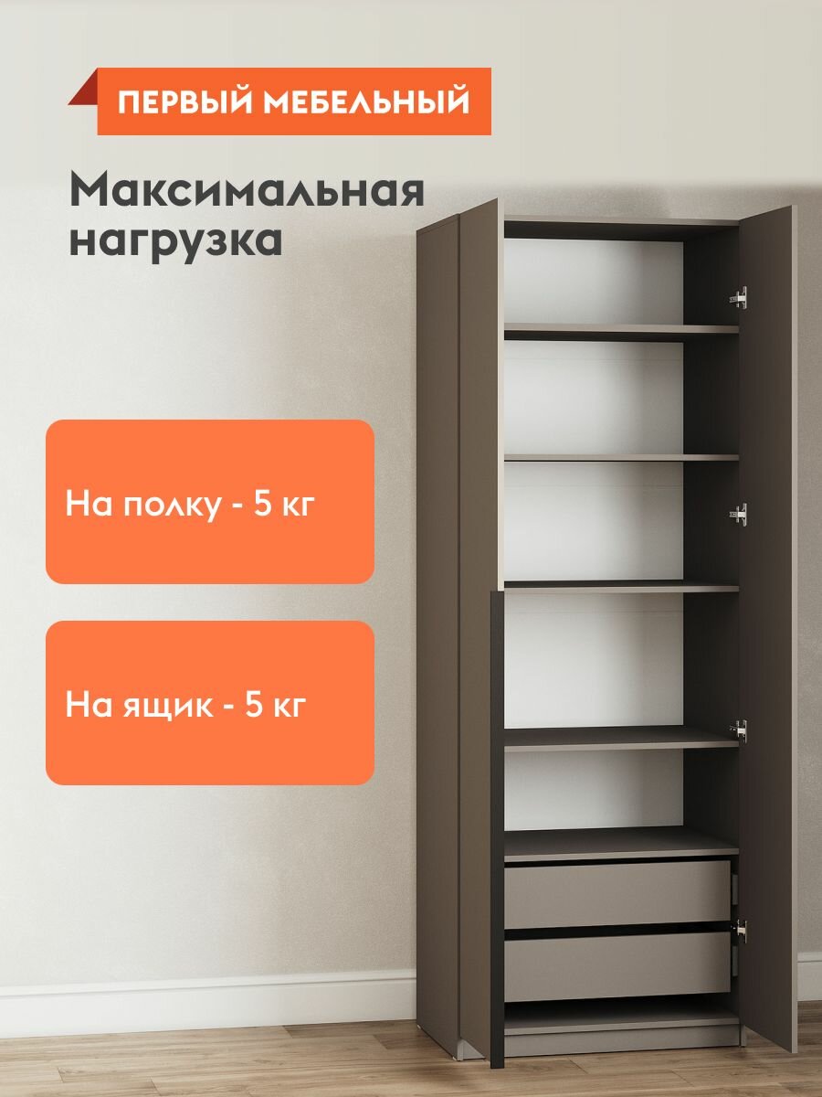 Шкаф распашной для одежды и хранения вещей Арно с полками, с ящиками, с антресолью, 80.1х50.6х260 см, Графит