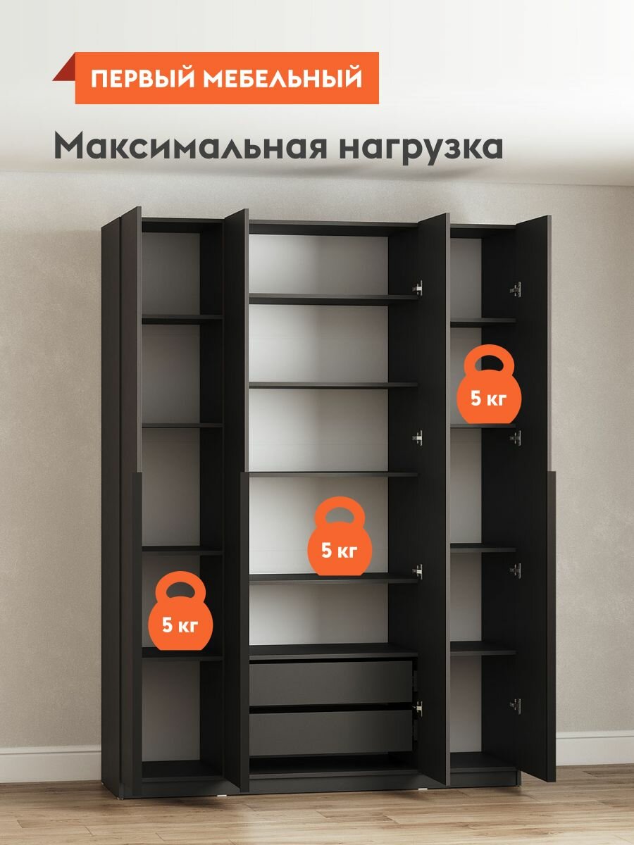 СохранитьШкаф распашной для одежды Арно с полками, с ящиками, с доводчиками, 160.1х50.6х221.6 см, Графит интересное: