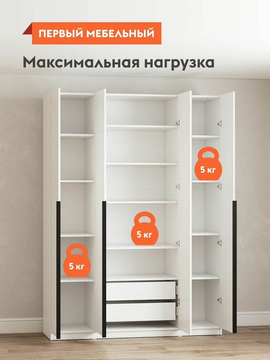 Шкаф для одежды распашной Нонтон Луас, 120 см, 7 полок и штанга, белый глянец