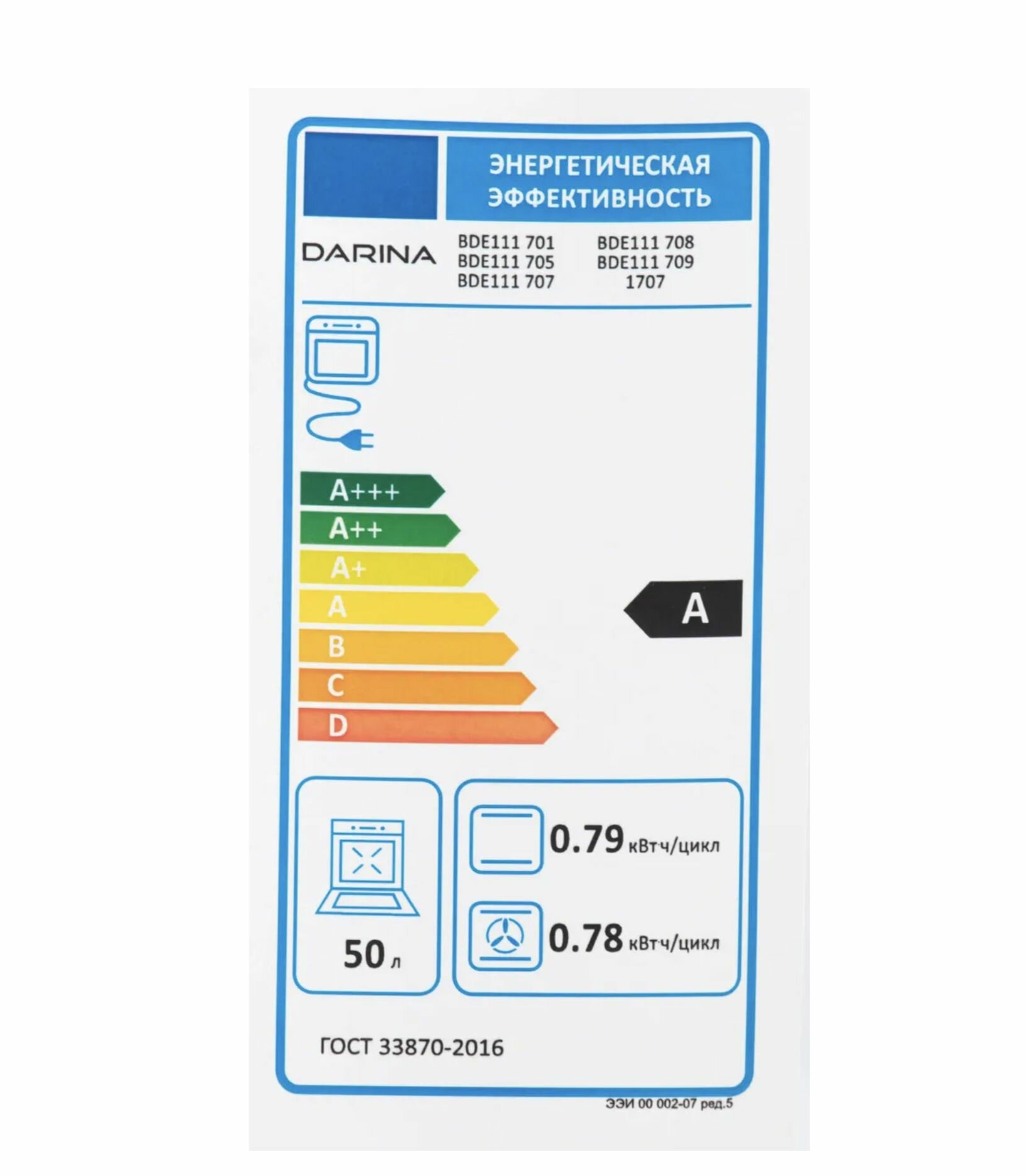 | Объем духовки | 50 л |