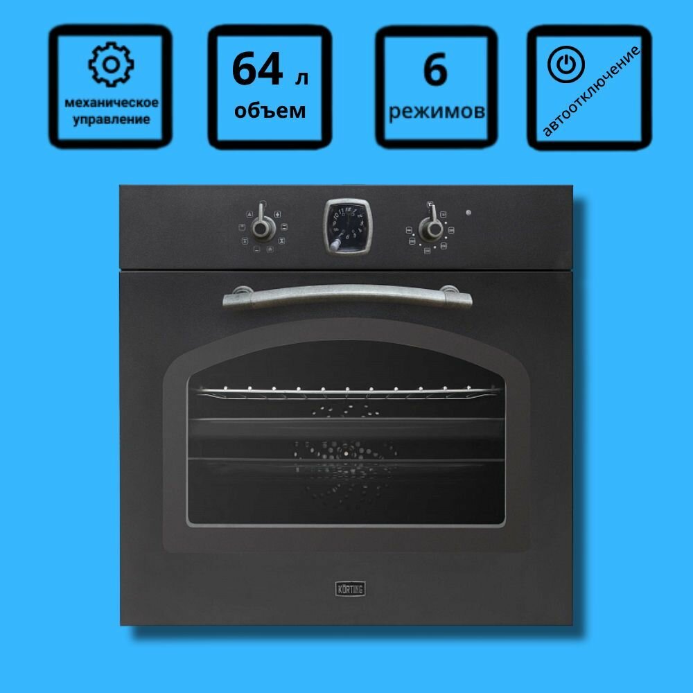 Электрический духовой шкаф Korting OKB 481 CRSN, ретро-стиль, 8 режимов, таймер, автоматическое отключение, черный, 60 см