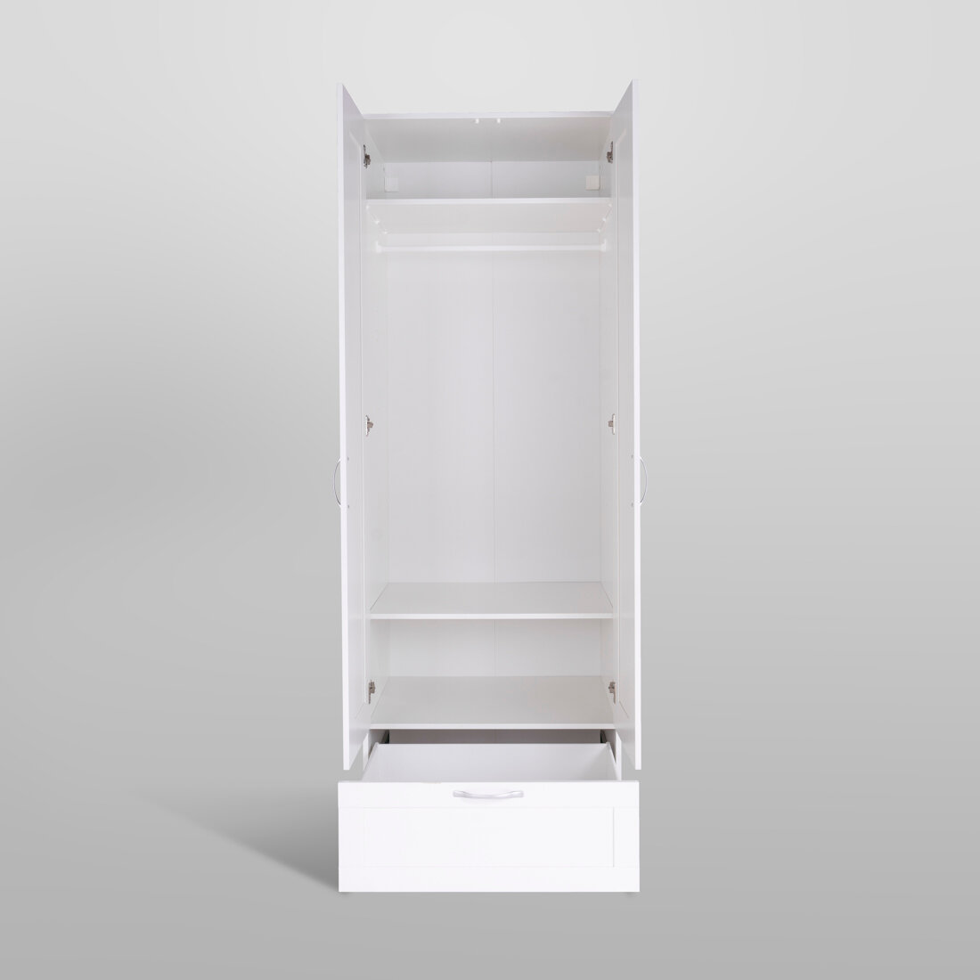 Шкаф для одежды распашной Нонтон Луас, 120 см, 7 полок и штанга, белый глянец
