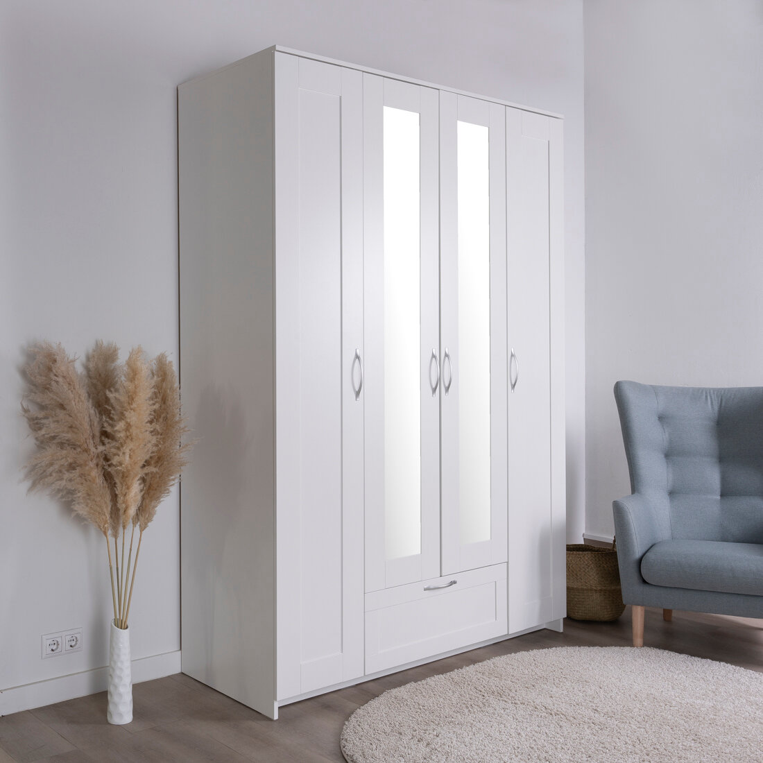 Купить Шкаф ГУД ЛАКК Сириус, 4 двери и 1 ящик с зеркалом, 220х156х59 см, белый
