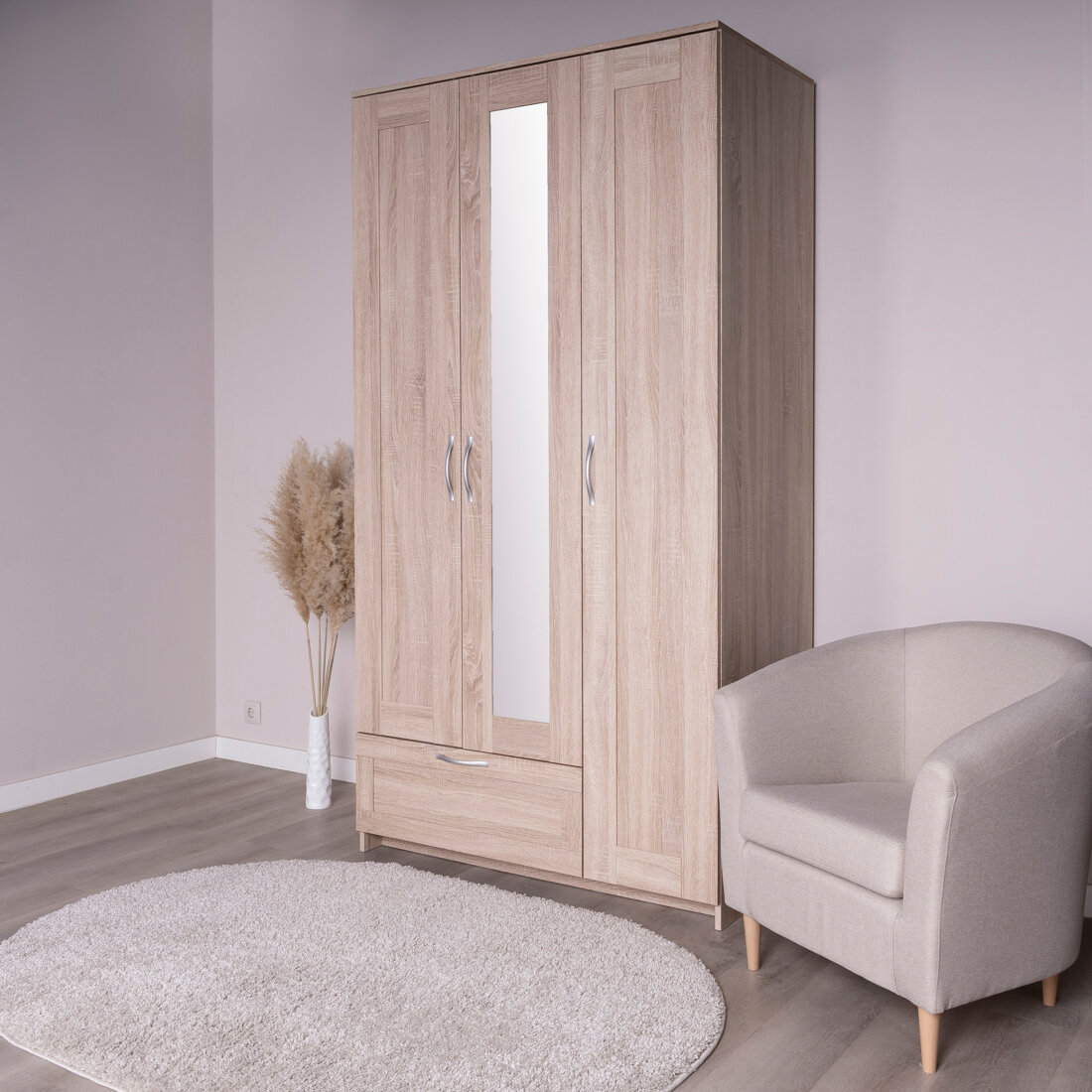СохранитьШкаф ГУД ЛАКК Сириус, 3 двери и 1 ящик с зеркалом, 220х117х59 см, дуб сонома интересное: