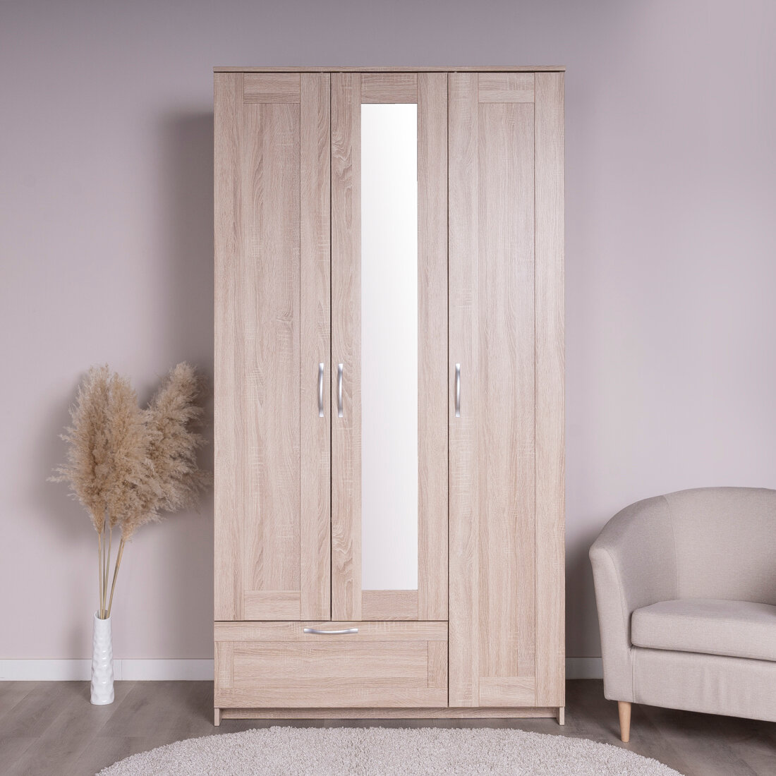 Купить Шкаф ГУД ЛАКК Сириус, 3 двери и 1 ящик с зеркалом, 220х117х59 см, дуб сонома