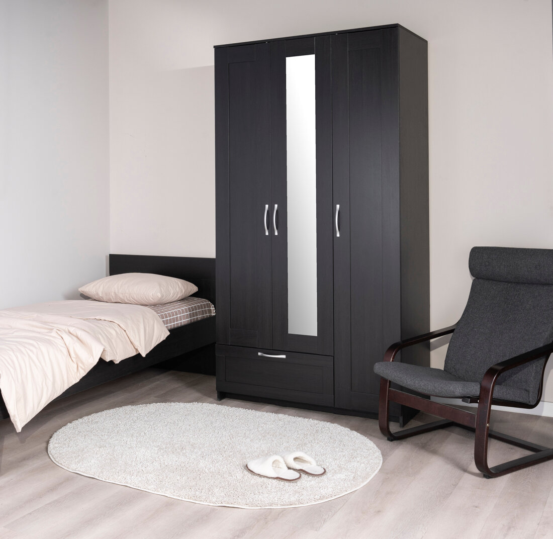 Шкаф ГУД ЛАКК Сириус, 3 двери и 1 ящик, 220х117х59 см, черно-коричневый, дуб венге