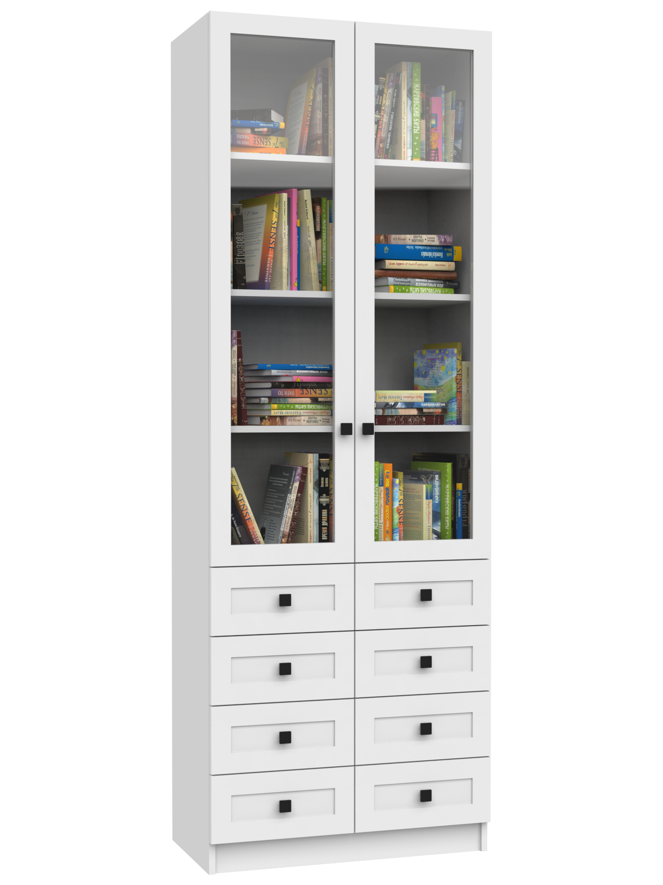 Купить Шкаф книжный двухстворчатый Вита 2-6 с 8 ящиками, ШхГхВ: 68х38х210 см, белый