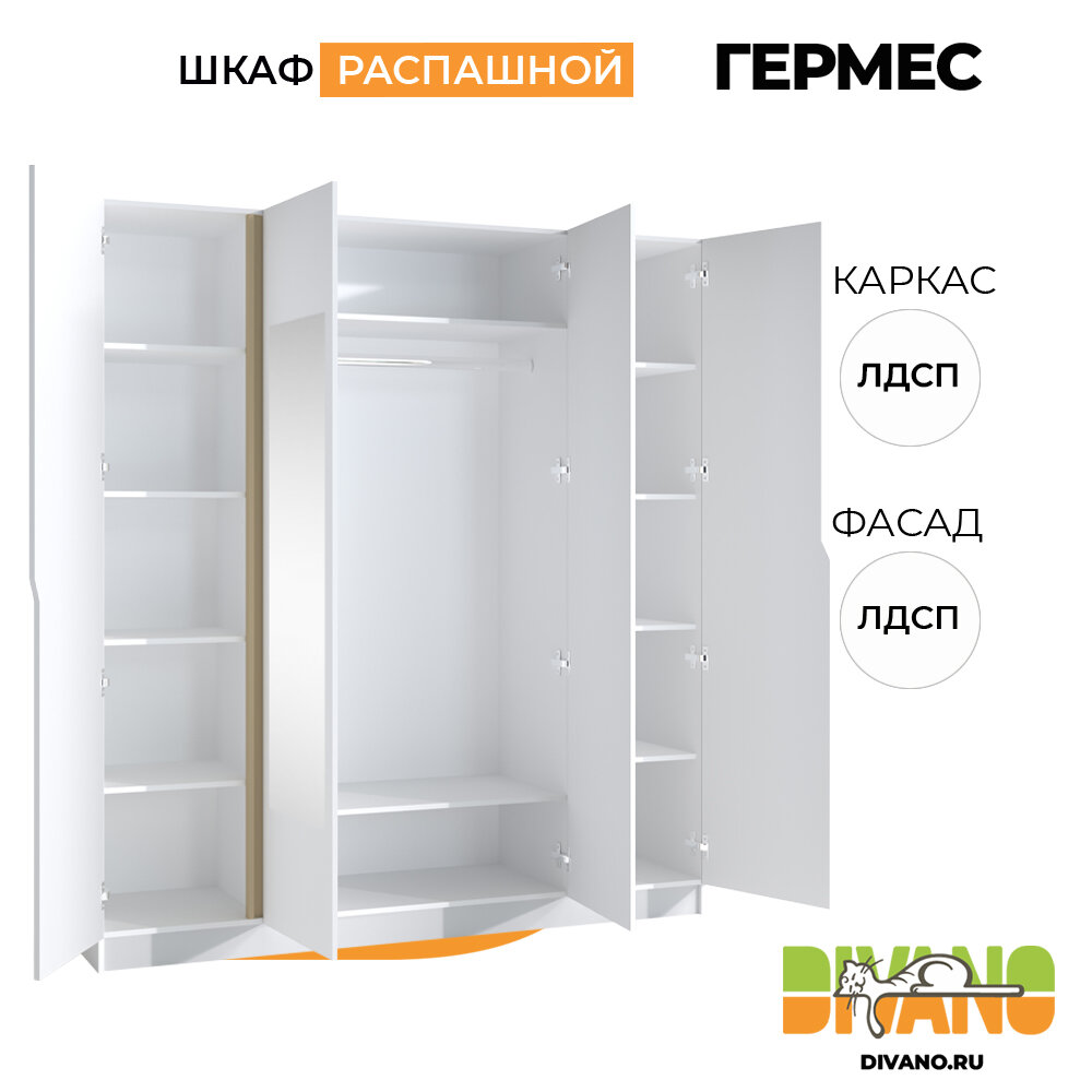 СохранитьШкаф распашной Гермес 4-х дверный с 2-мя зеркалами 2.0 м (белый) интересное: