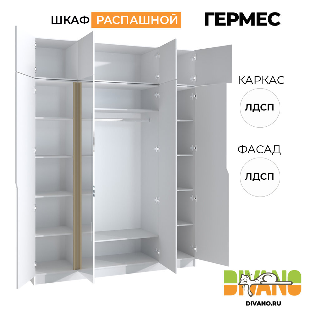Шкаф распашной Гермес 4-х дверный с антресолью 2.0 м (белый)