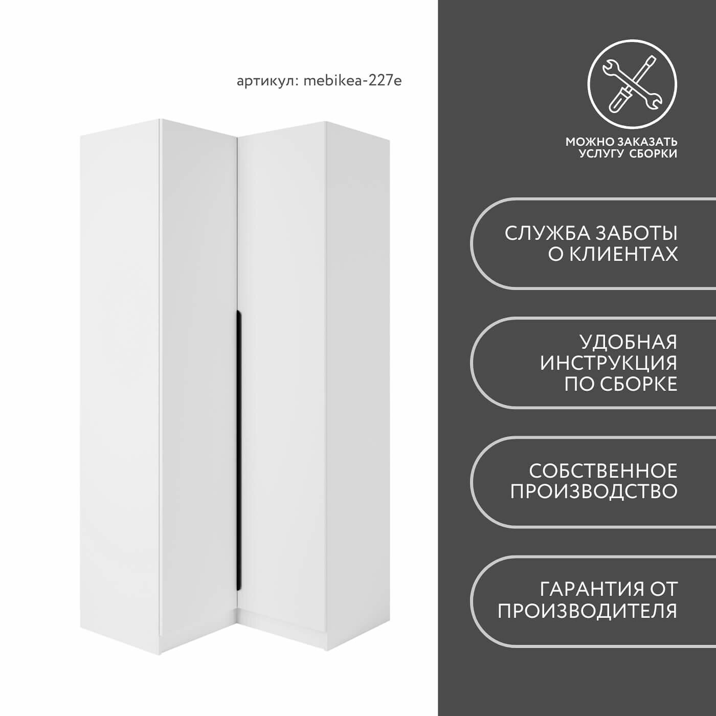 Шкаф Mebikea-225e белый современный минимализм для прихожей и спальни