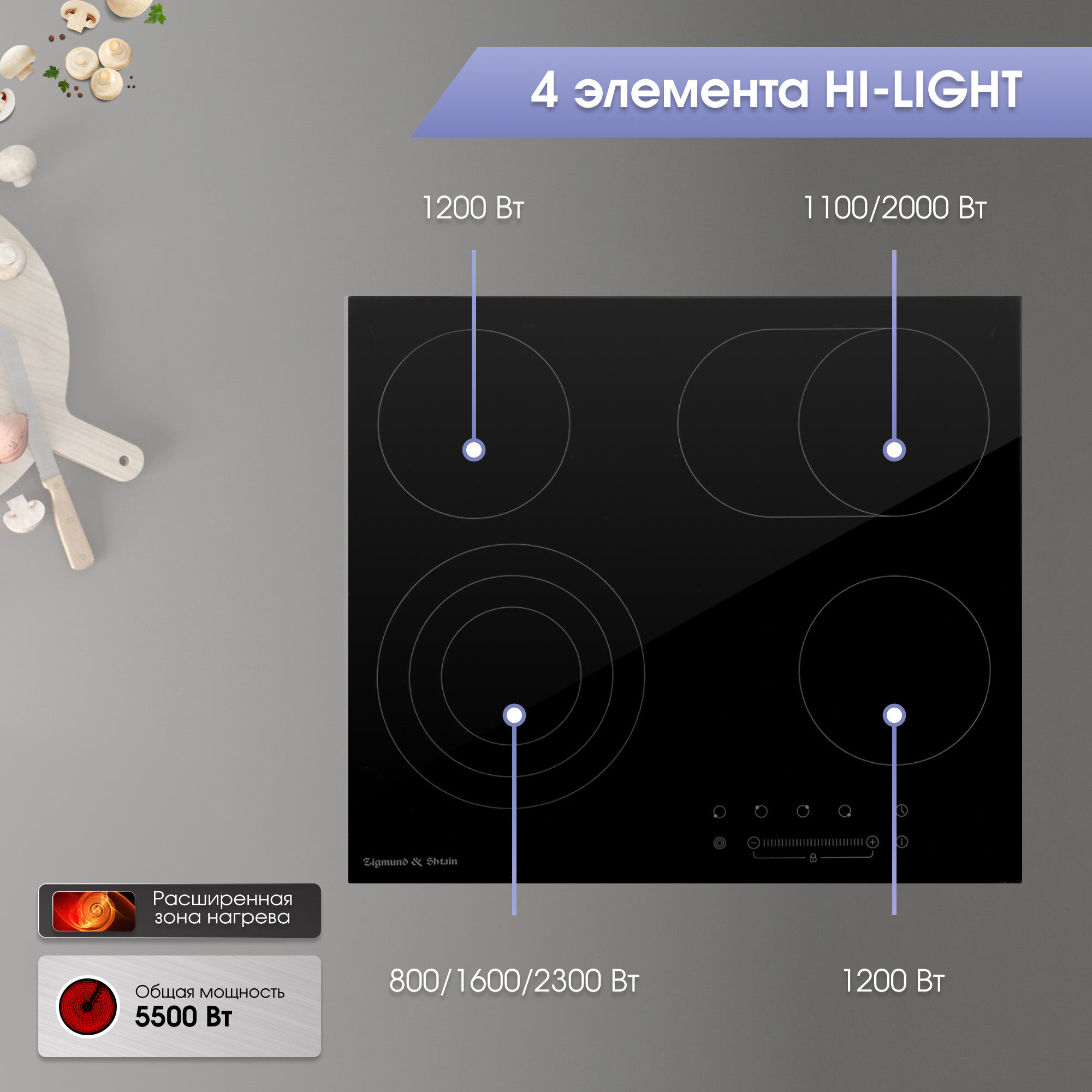 | Специальные конфорки | Hi Light / керамическая / с овальной зоной нагрева / трехконтурная / электроконфорка |